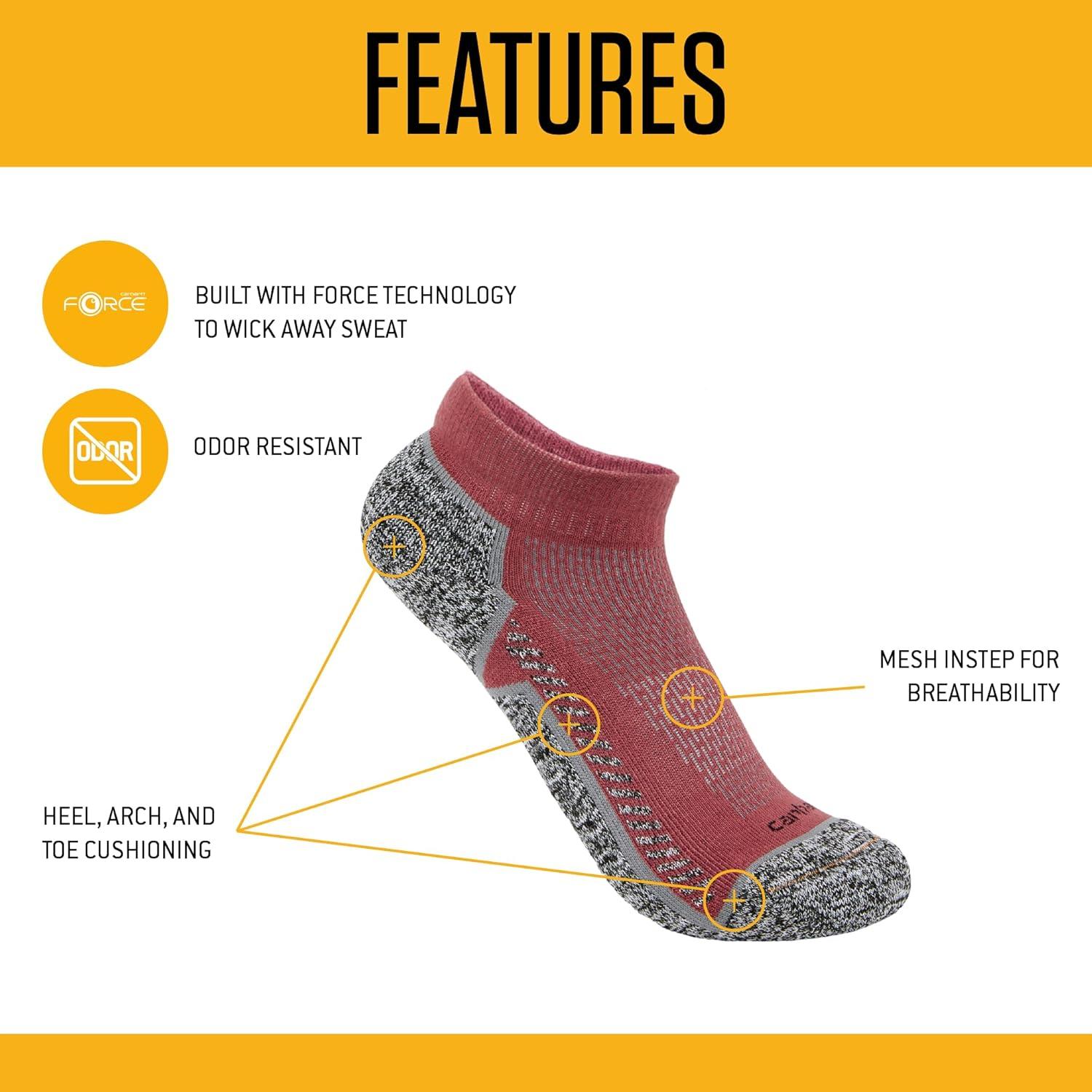 Carhartt womens Force Grid Midweight Synthetic-merino Wool Blend Quarter Sock(Carbon Heather)