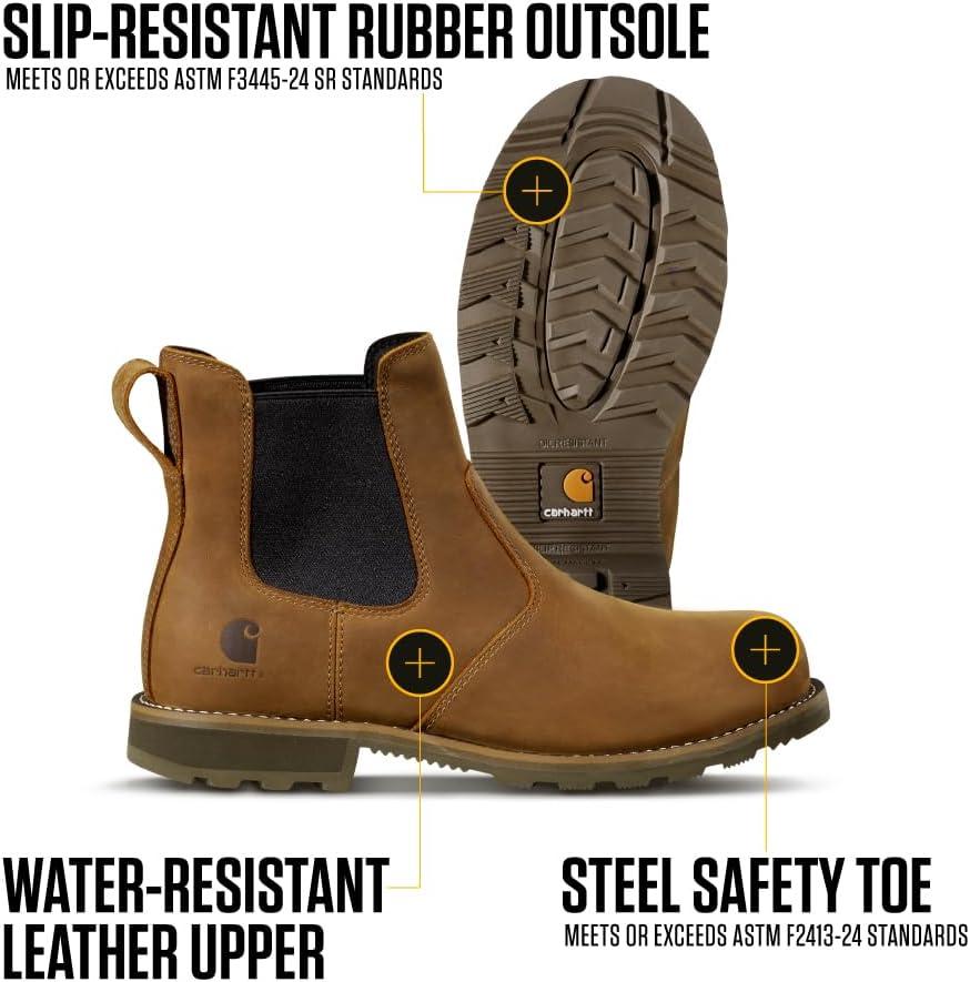 Carhartt Men’s Frontier Water Resistant Steel Toe Chelsea Boots – Slip-on Leather Build with Stretch Gore, EVA Midsole & Rugged Grip(Bison Brown Oil Tan)