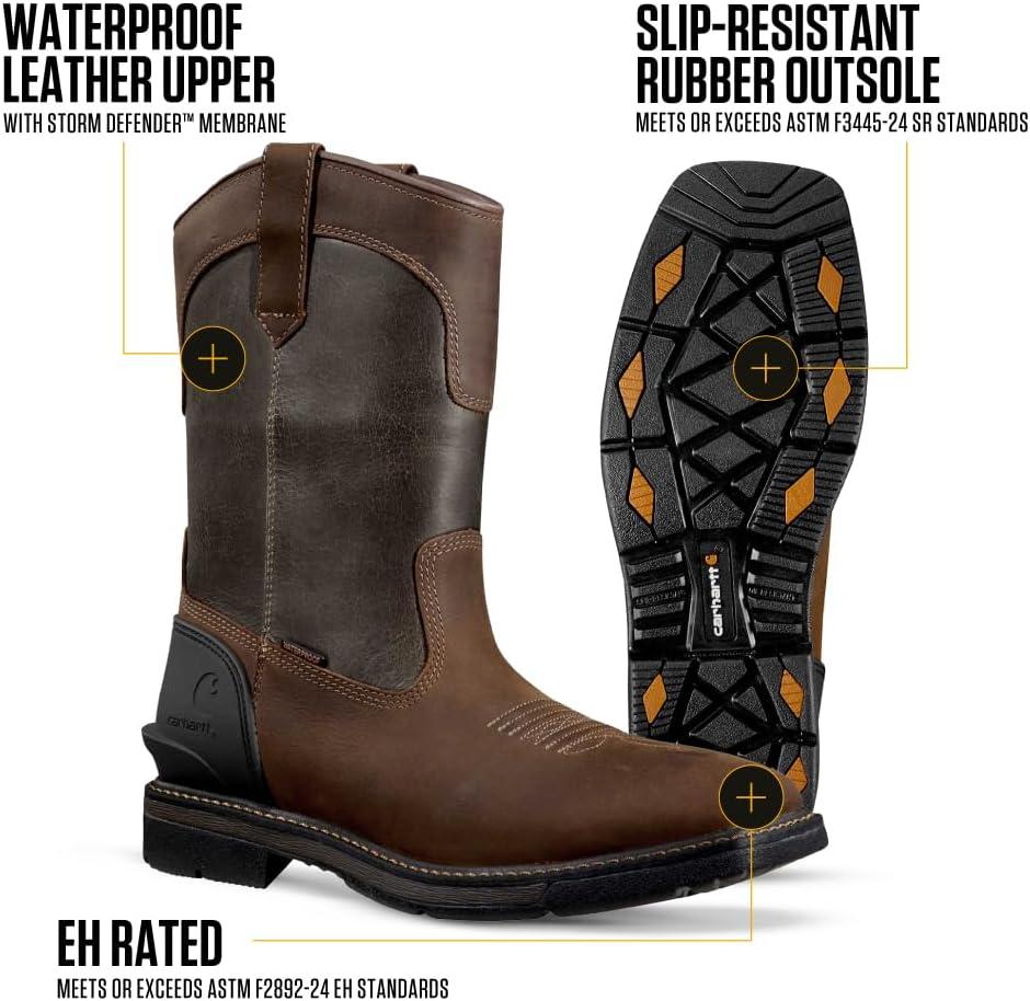 Carhartt Men’s 11-inch Bison Waterproof Work Boots(Dark Brown/Black Leather)