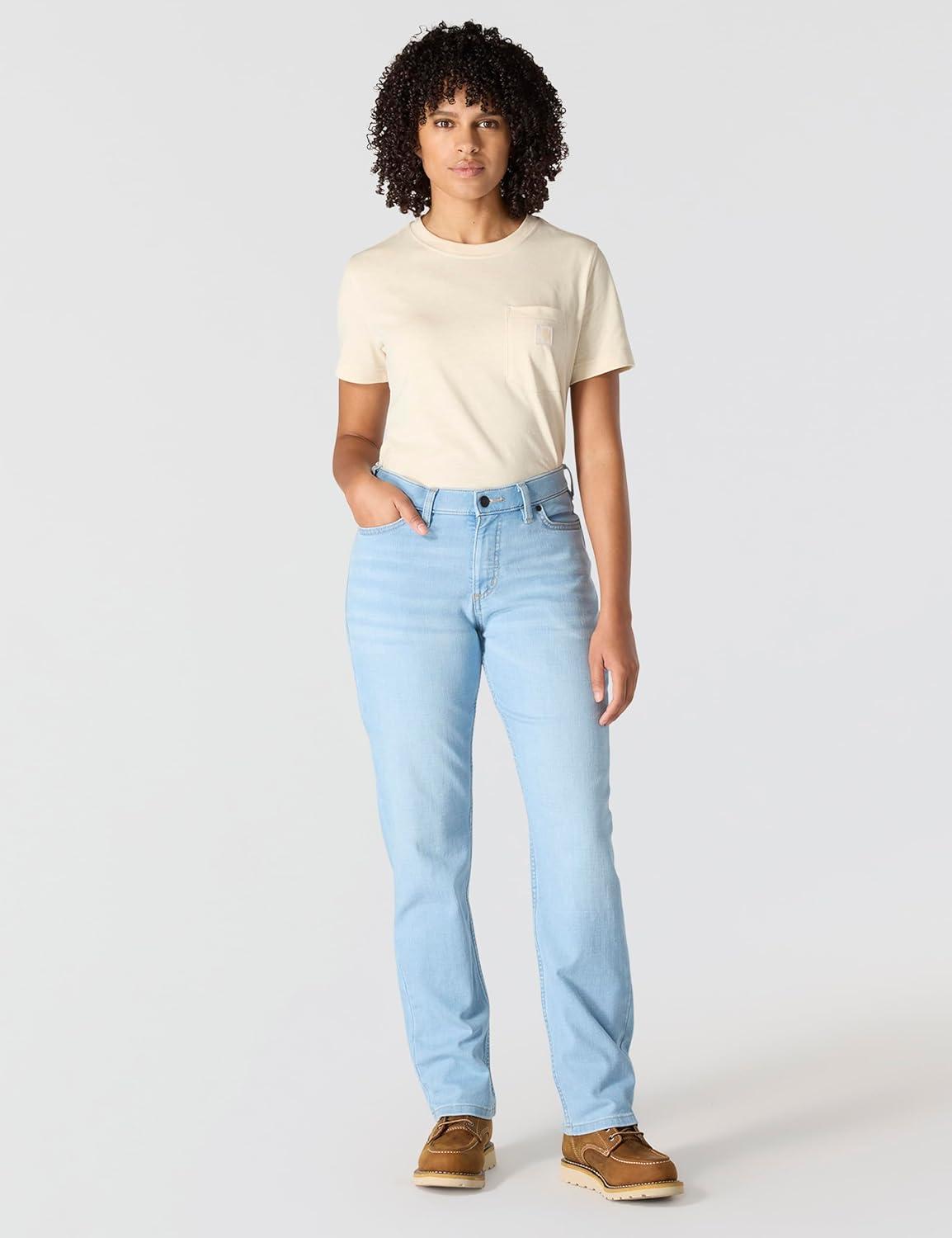 Carhartt Womens The Essential Mid Rise Comfort Jeans – Performance Fit Stretch Denim(Morning Sky)