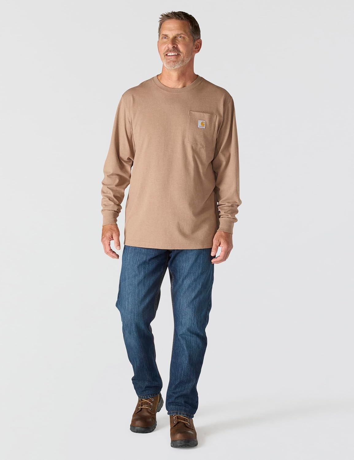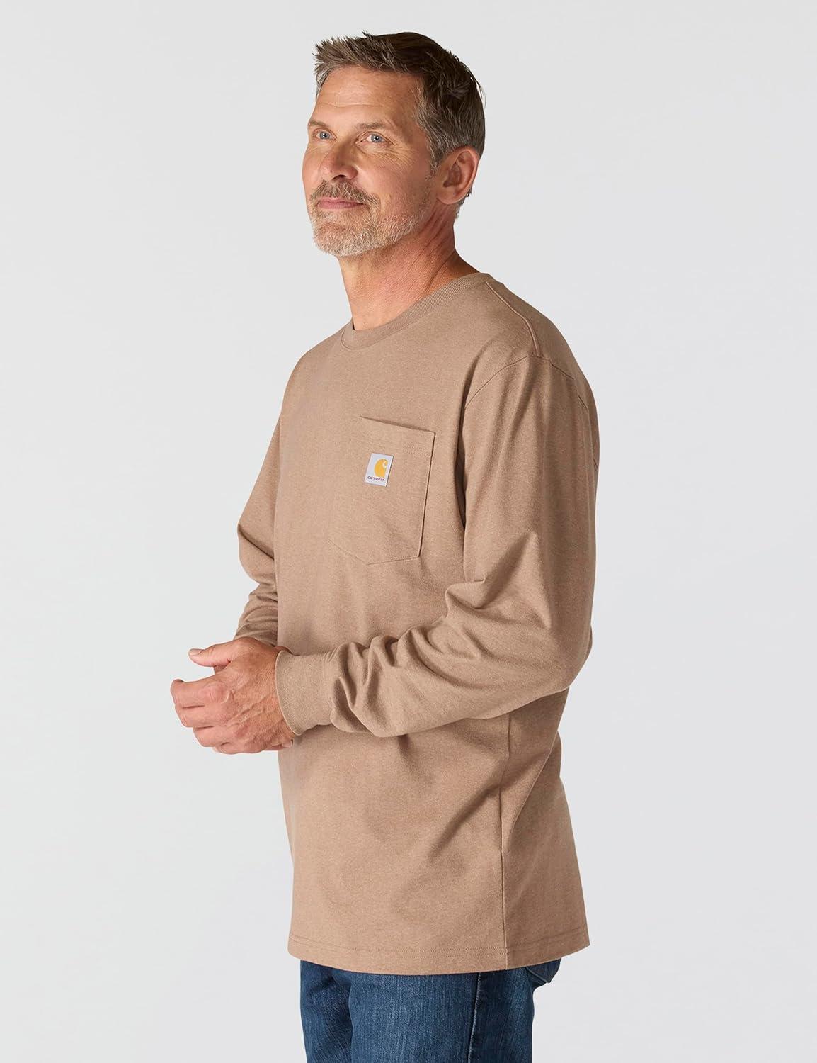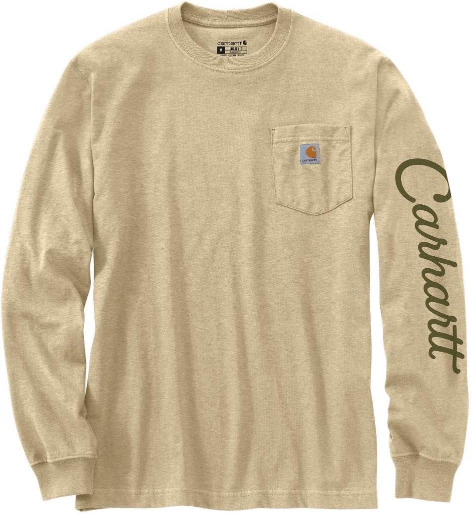 Carhartt Men’s Loose Fit Heavyweight Long-Sleeve Pocket Deer Graphic T-Shirt(Soft Sepia Heather)