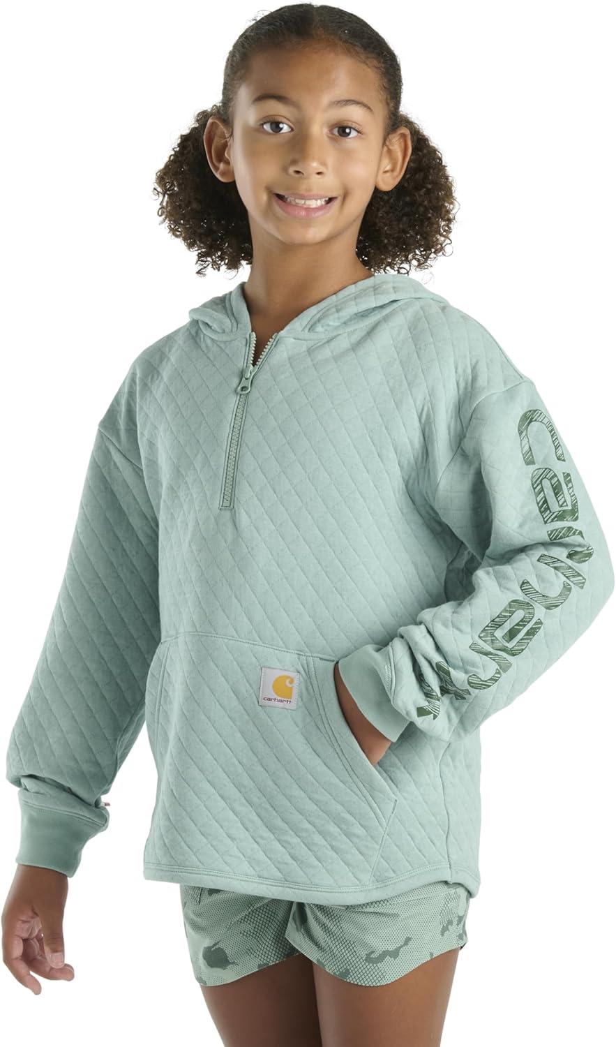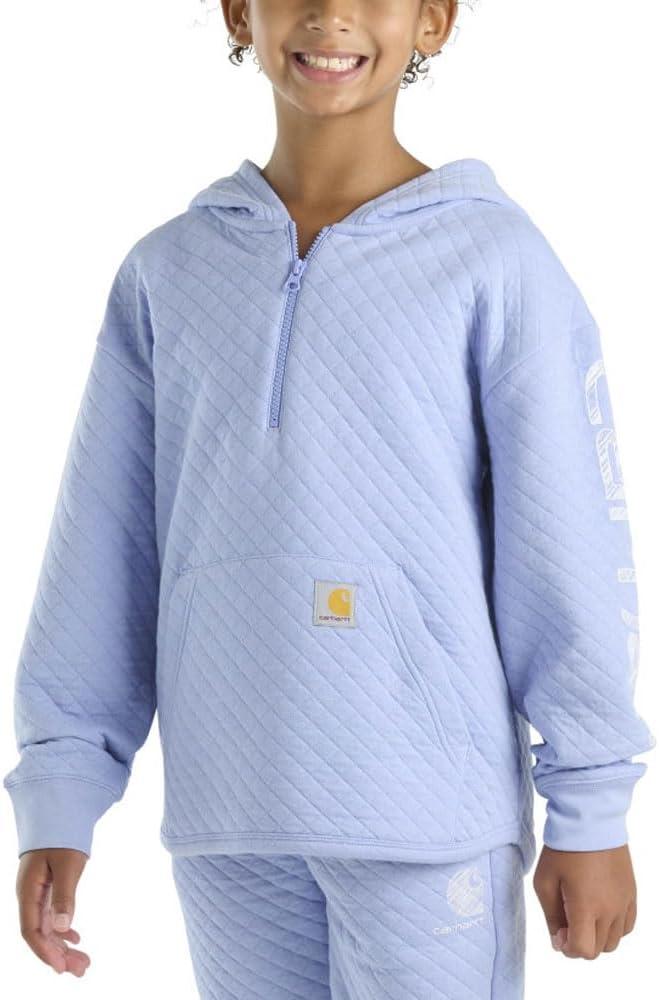 Carhartt boys Long-sleeve Half-zip Hooded Sweatshirt(Starlight Blue)
