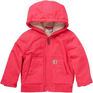 Carhartt baby-girls Baby Girls Sherpa-lined Hooded Canvas Zip-up Jacket(Pink Lemonade)