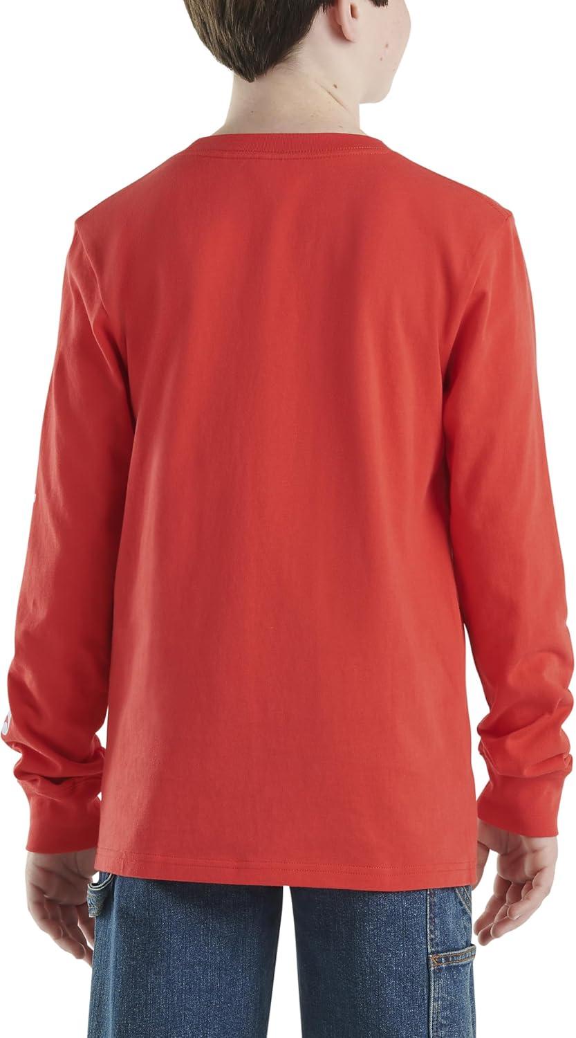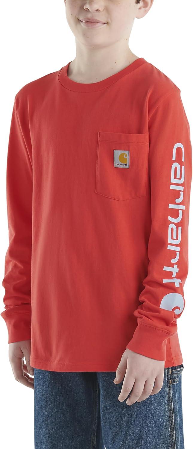 Carhartt Boys’ Long-Sleeve Logo Sleeve Pocket T-Shirt(Chili Pepper)