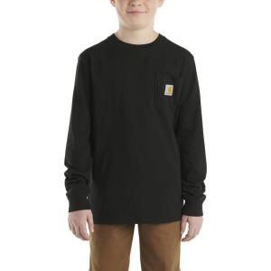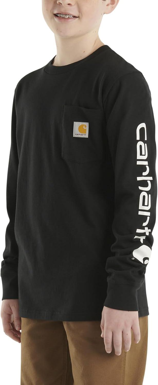 Carhartt Boys’ Long-Sleeve Logo Sleeve Pocket T-Shirt(Caviar Black)