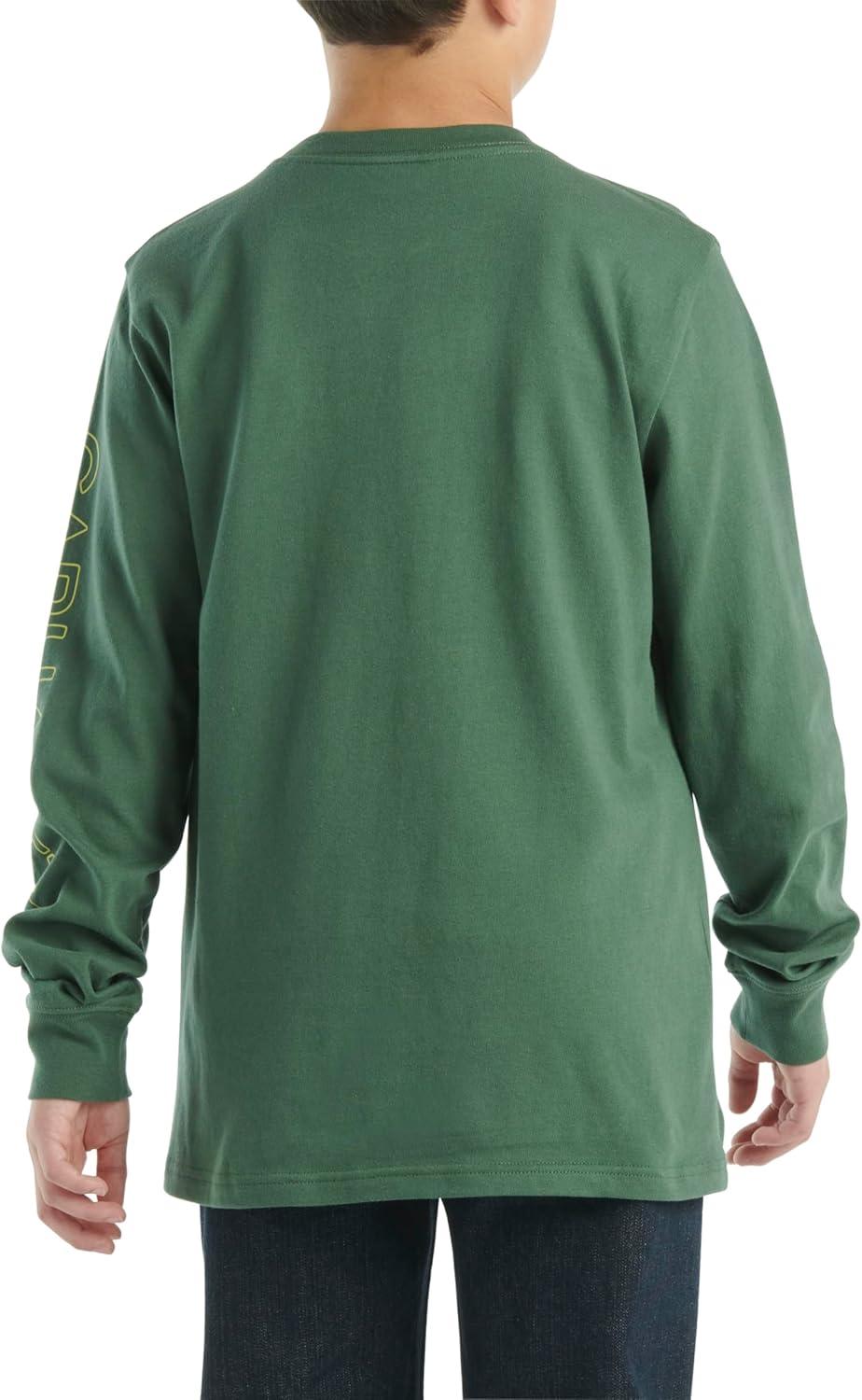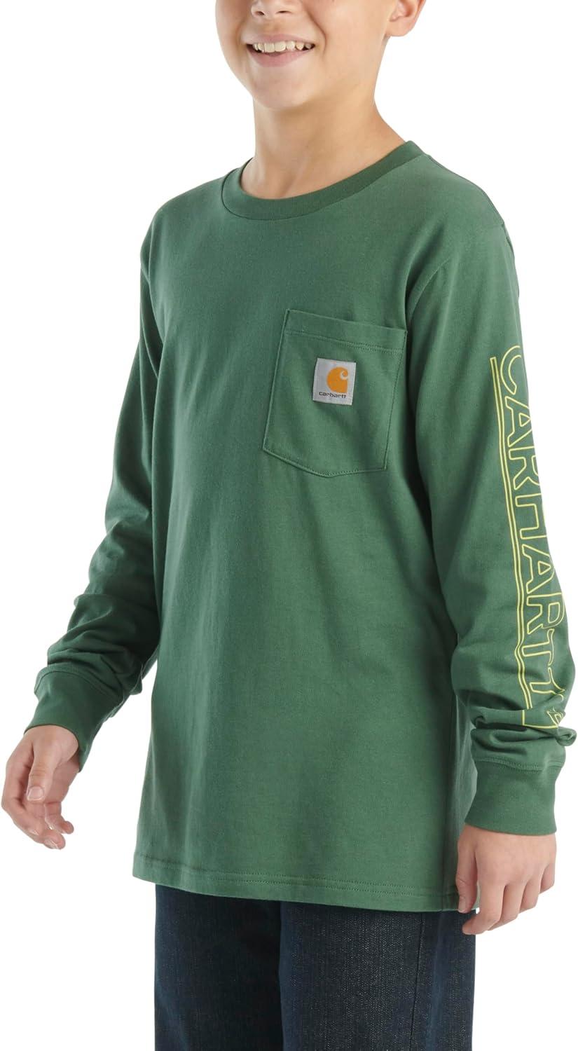 Carhartt Boys’ Long-Sleeve Logo Sleeve Pocket T-Shirt(Cilantro)