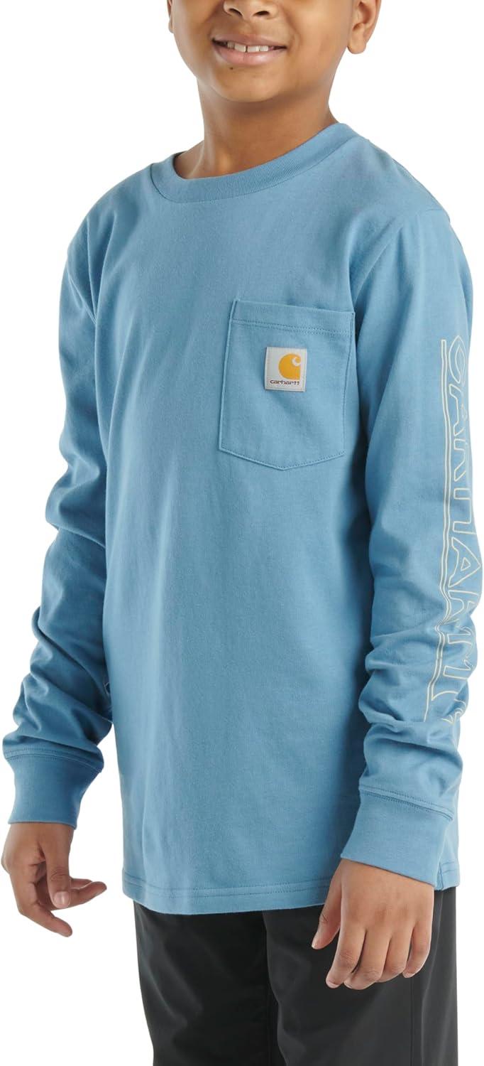 Carhartt Boys’ Long-Sleeve Logo Sleeve Pocket T-Shirt(Coronet Blue)