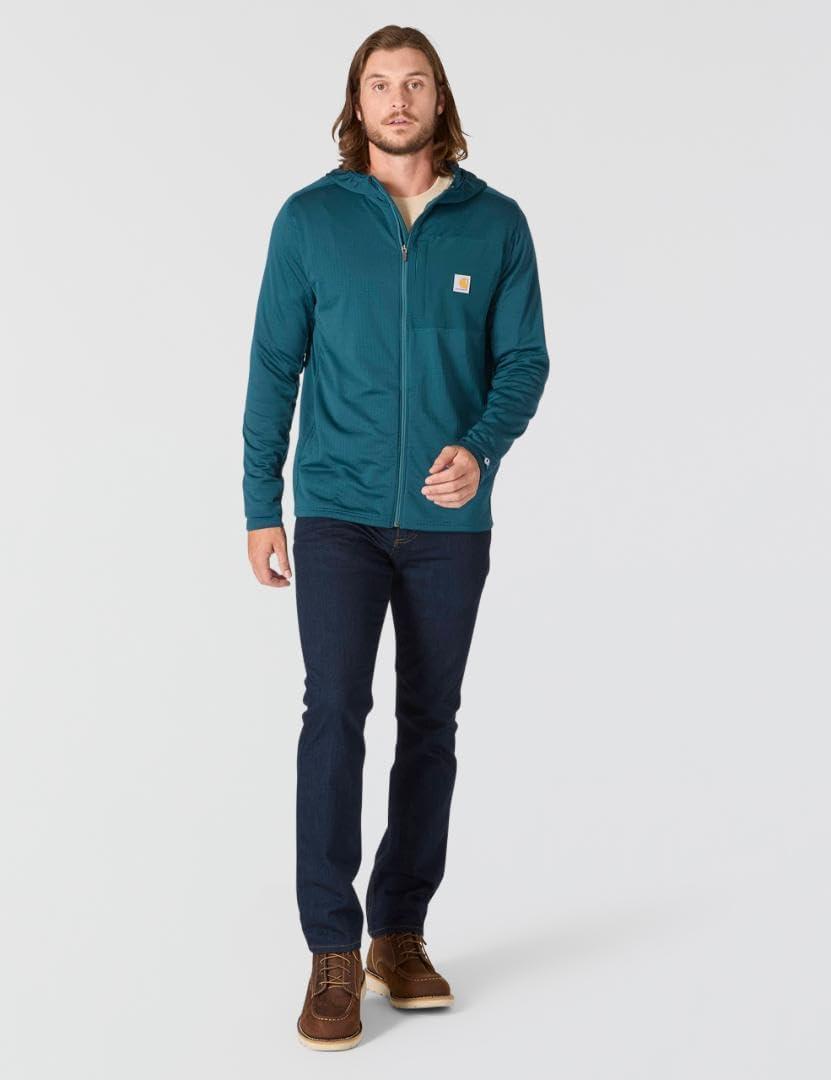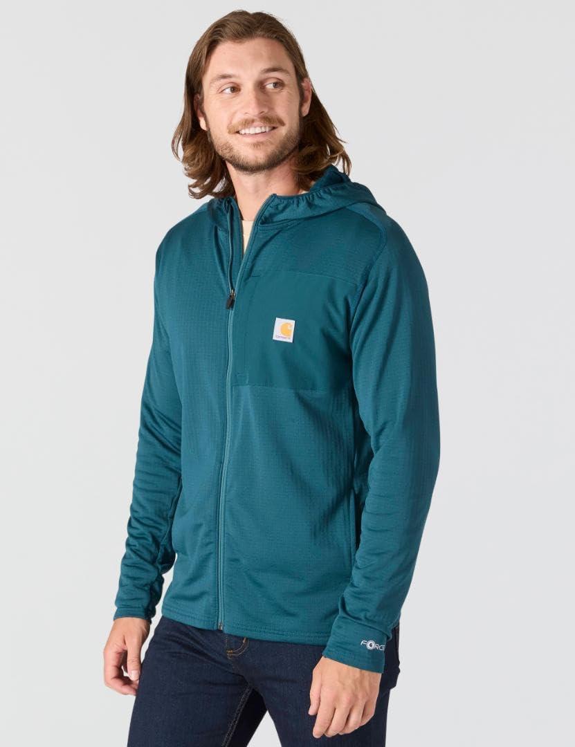 Carhartt Men’s Force Relaxed Fit Full-Zip Long-Sleeve Hooded T-Shirt(Greenstone)