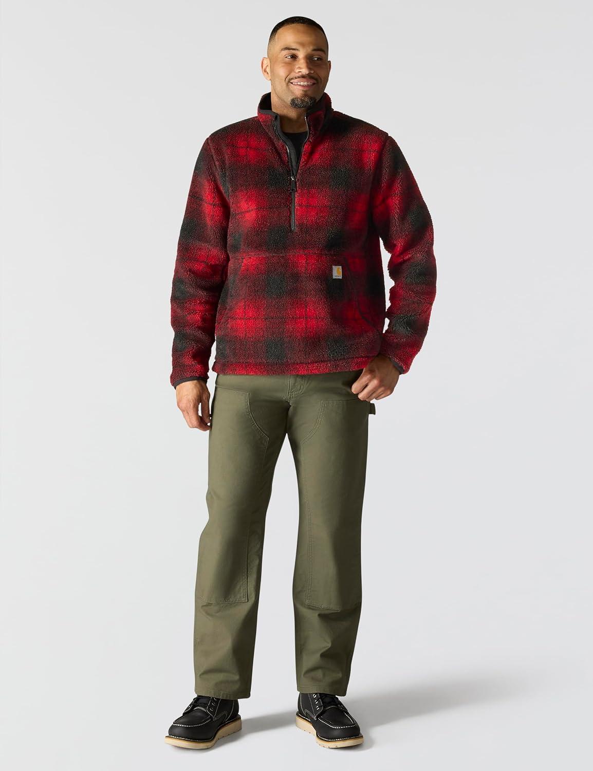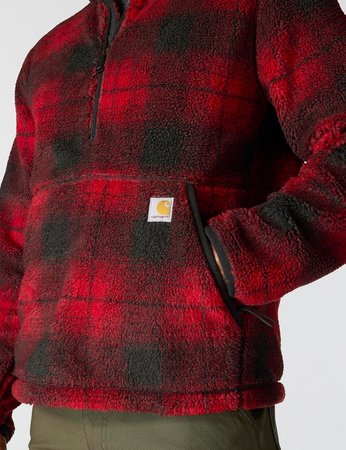 Carhartt mens Loose Fit Fleece Pullover(Industry Red Ombre Plaid)