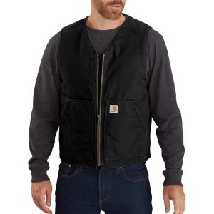 Carhartt Men’s Loose Fit Washed Duck Sherpa-Lined Mock-Neck Vest(Black)