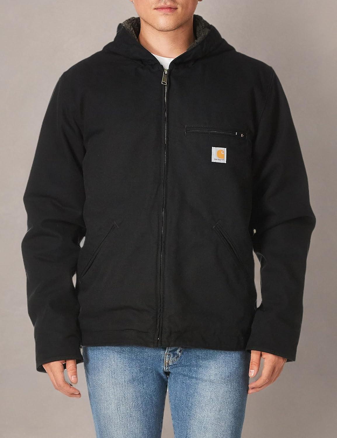 Carhartt Men’s Loose Fit Washed Duck Sherpa-Lined Coat(Black)