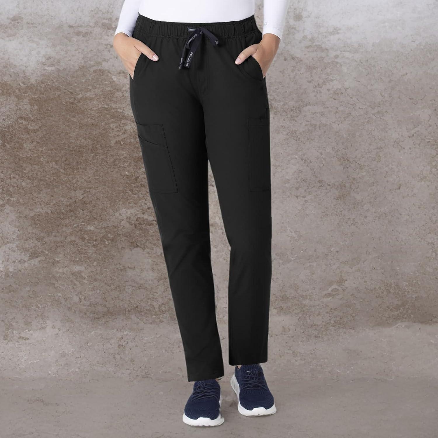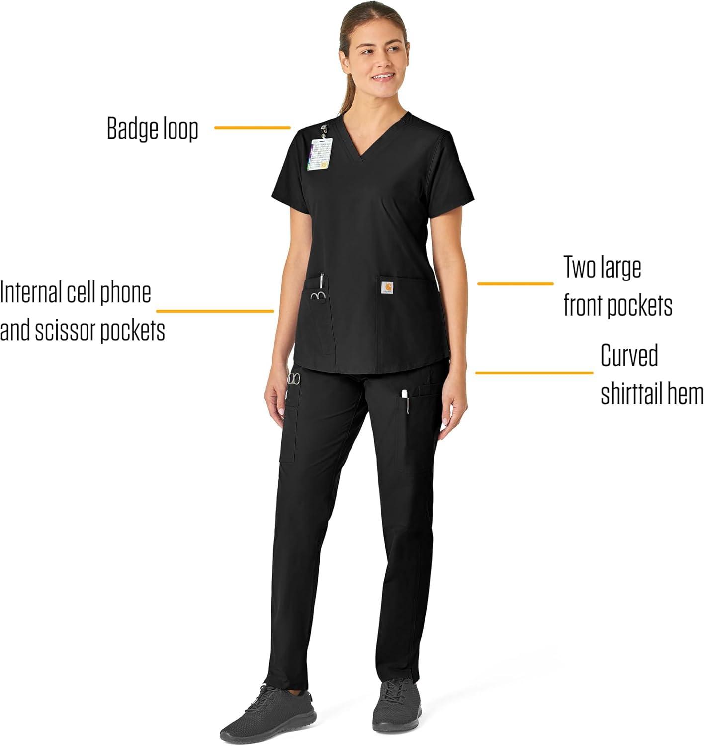 Carhartt Scrubs for Women, Force Crossflex StraightLeg Cargo Pants with Drawstring and 7 Pockets(Black)