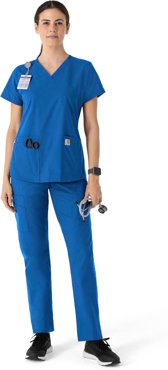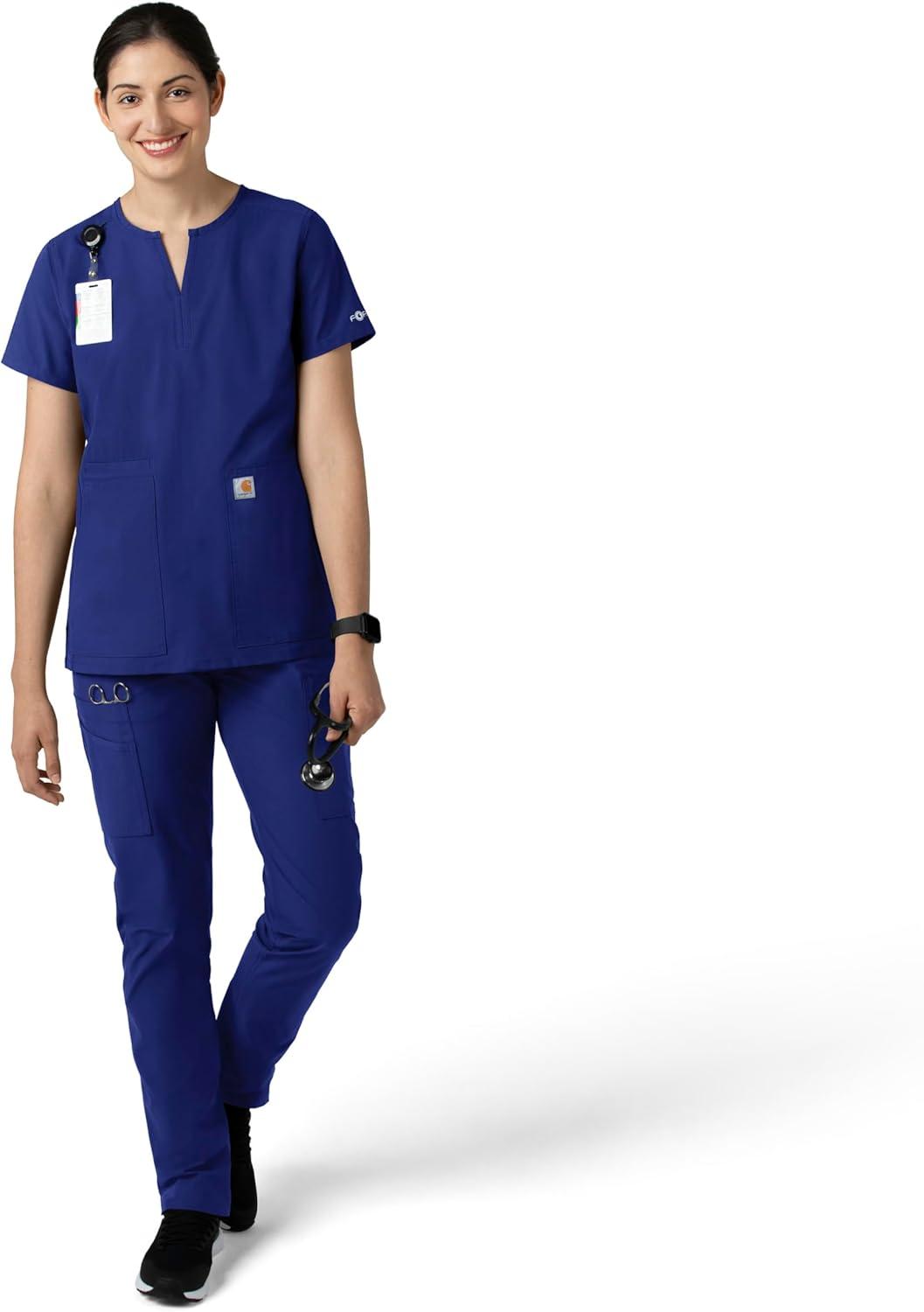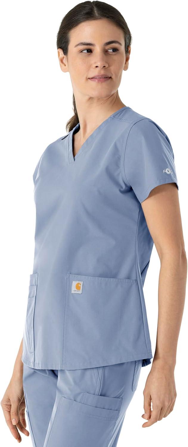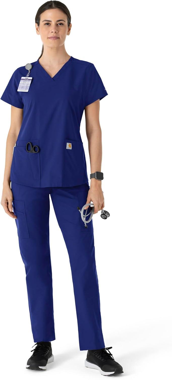 Carhartt Force Essentials Scrubs for Women, V-Neck Scrub Top – Galaxy Blue, M