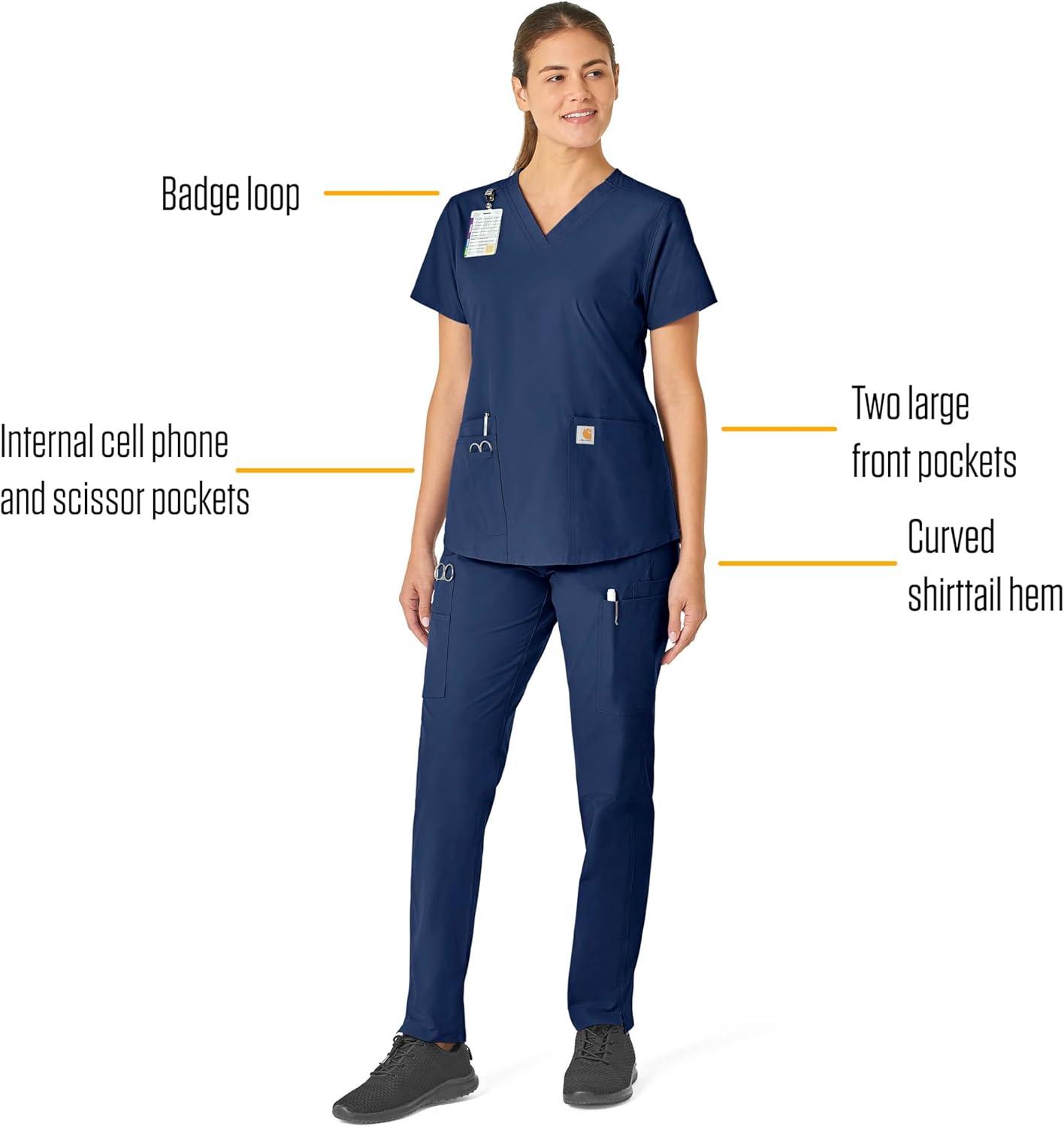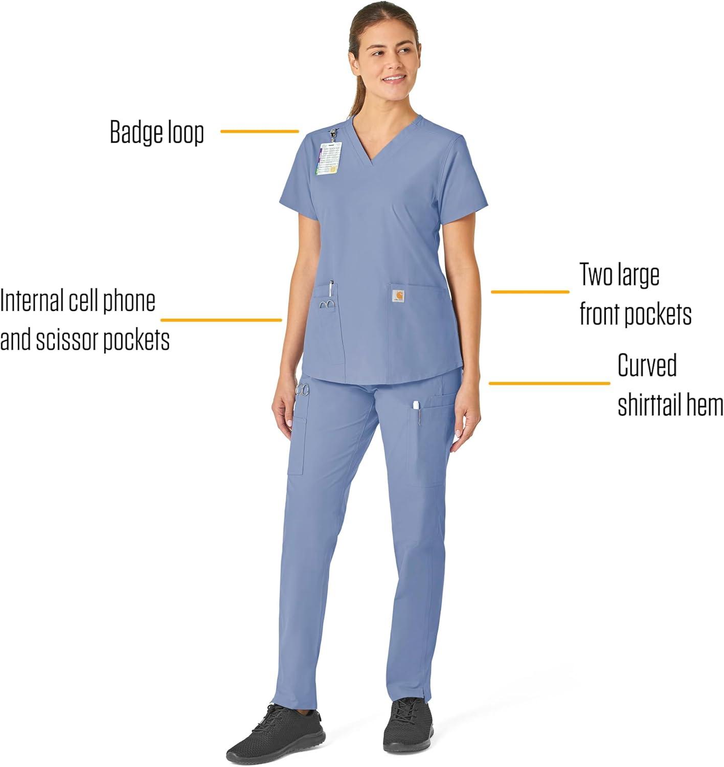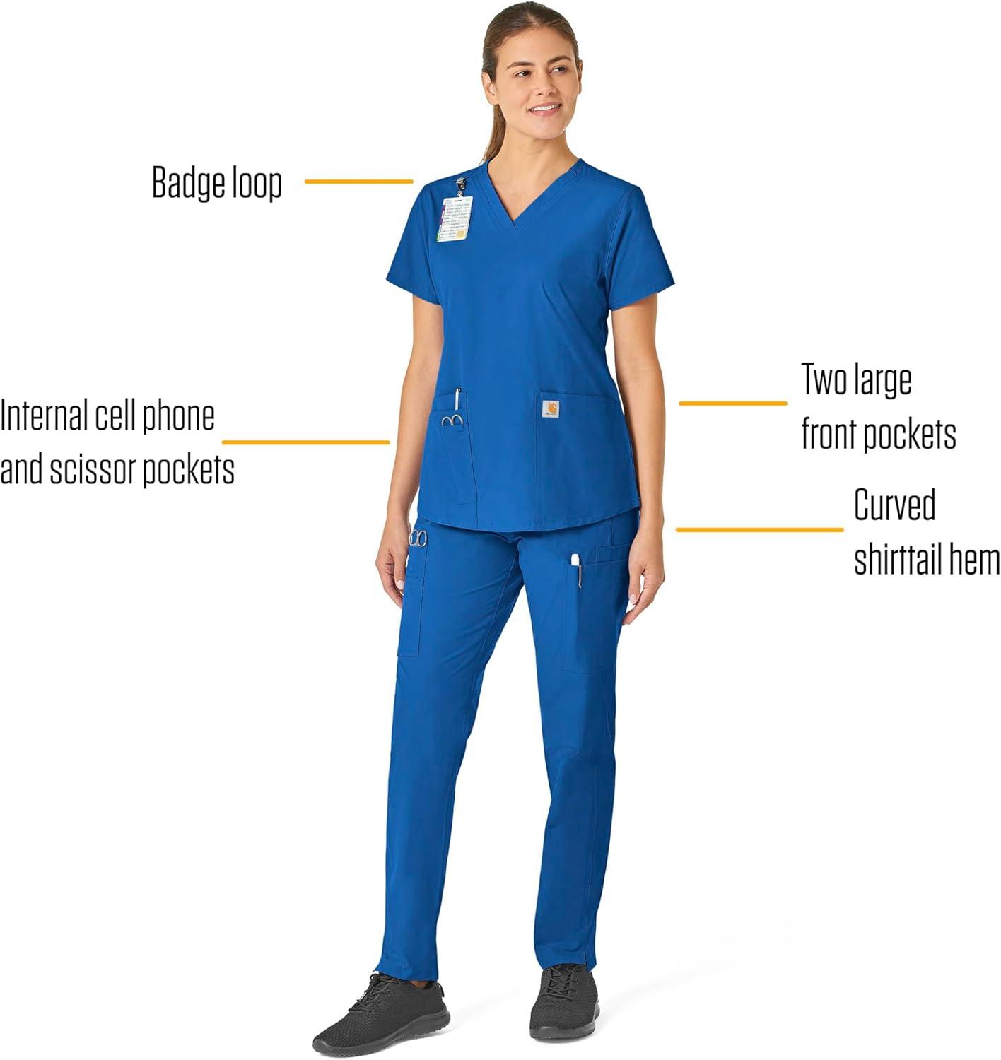Carhartt Force Essentials Scrubs for Women, V-Neck Scrub Top – Galaxy Blue, M
