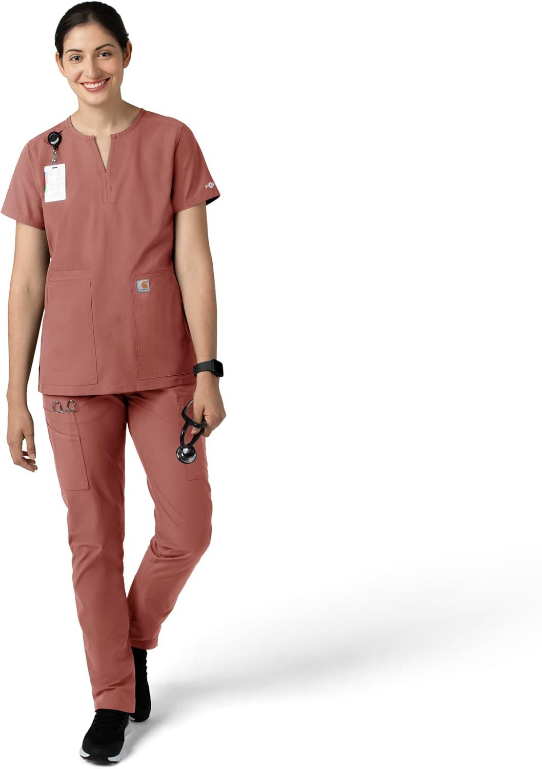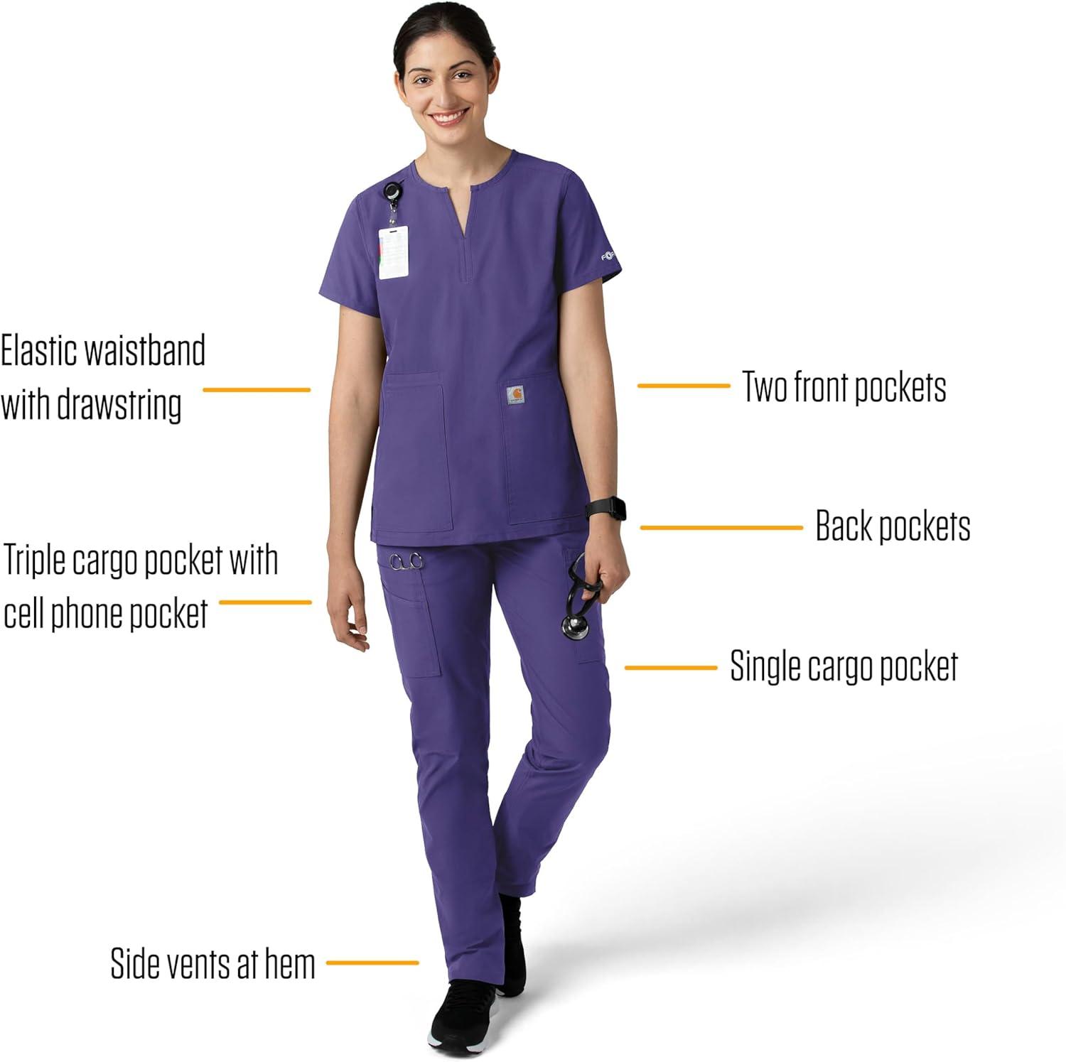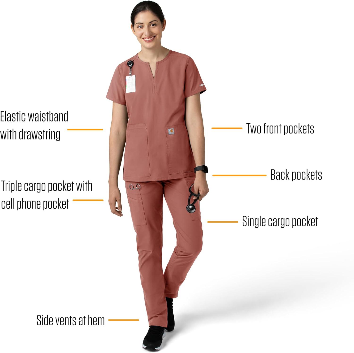 Carhartt Scrubs for Women, Force Crossflex StraightLeg Cargo Pants with Drawstring and 7 Pockets(Wildrose)