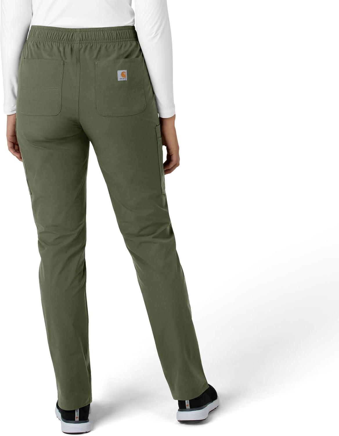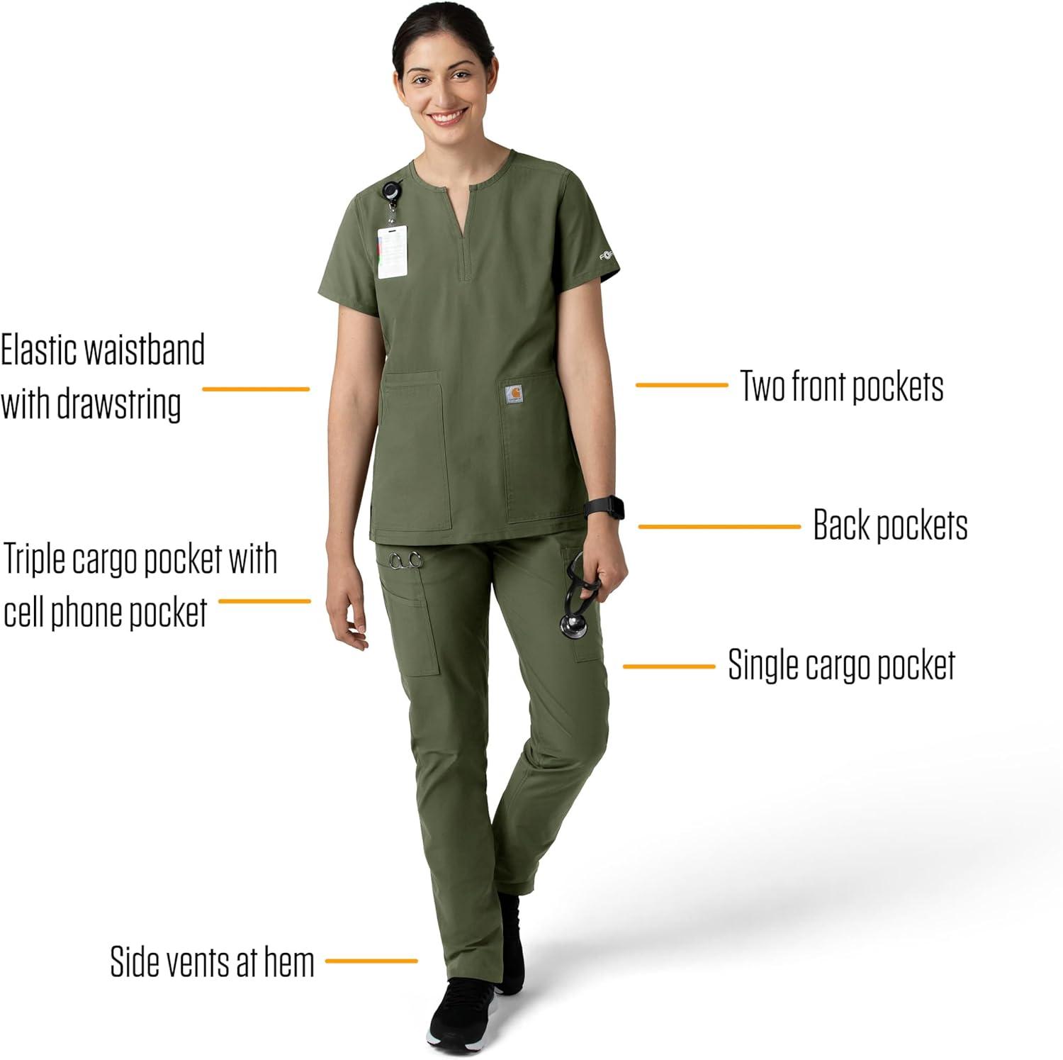 Carhartt Scrubs for Women, Force Crossflex StraightLeg Cargo Pants with Drawstring and 7 Pockets(Olive)