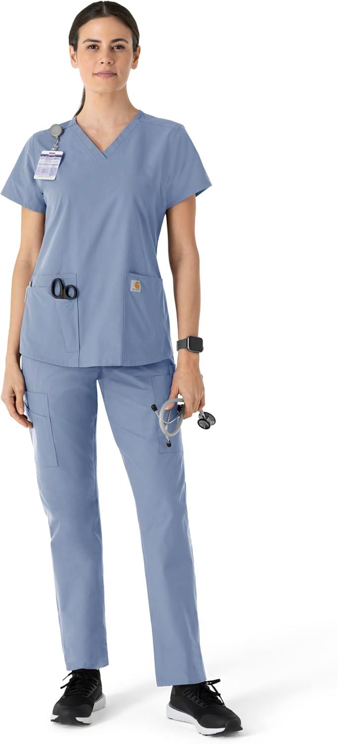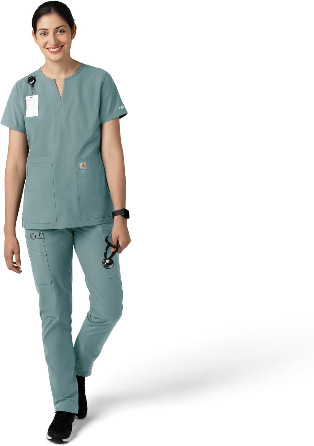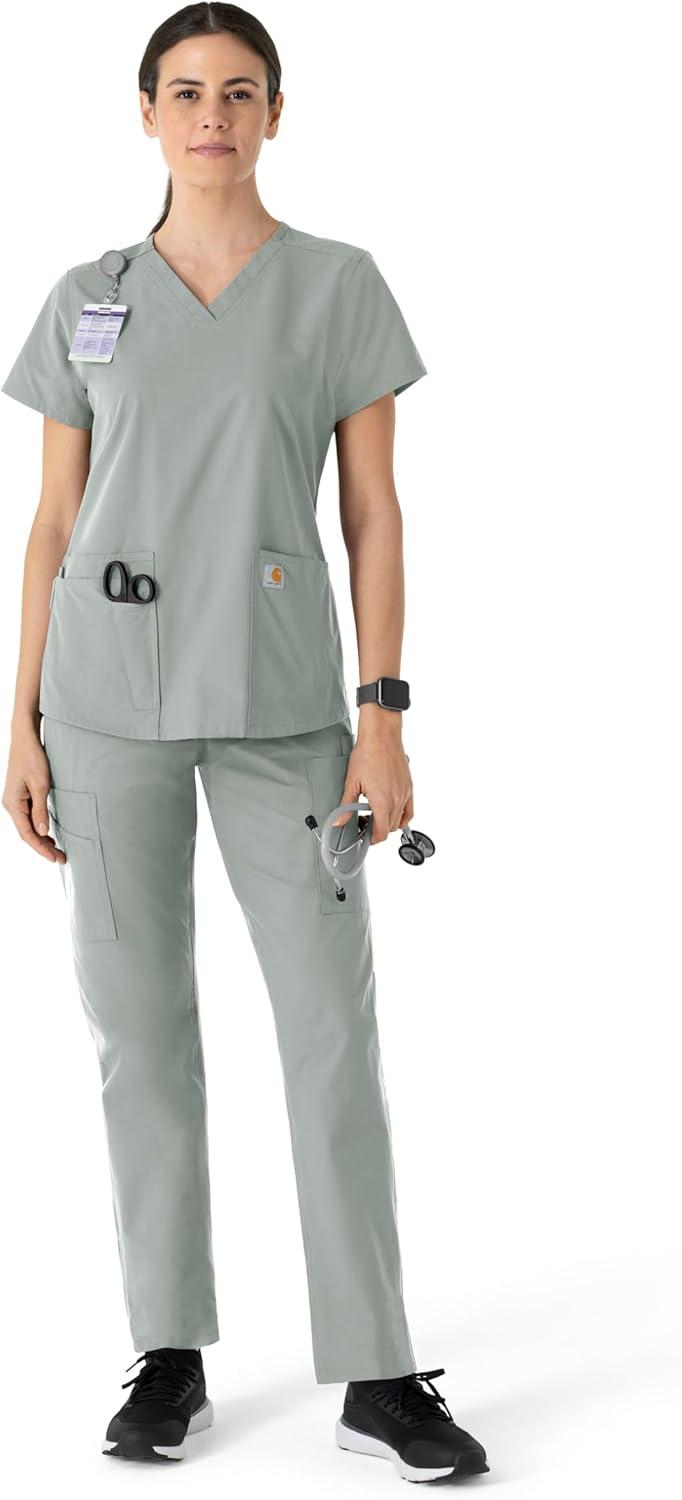 Carhartt Scrubs for Women, Force Crossflex StraightLeg Cargo Pants with Drawstring and 7 Pockets(Riverside)