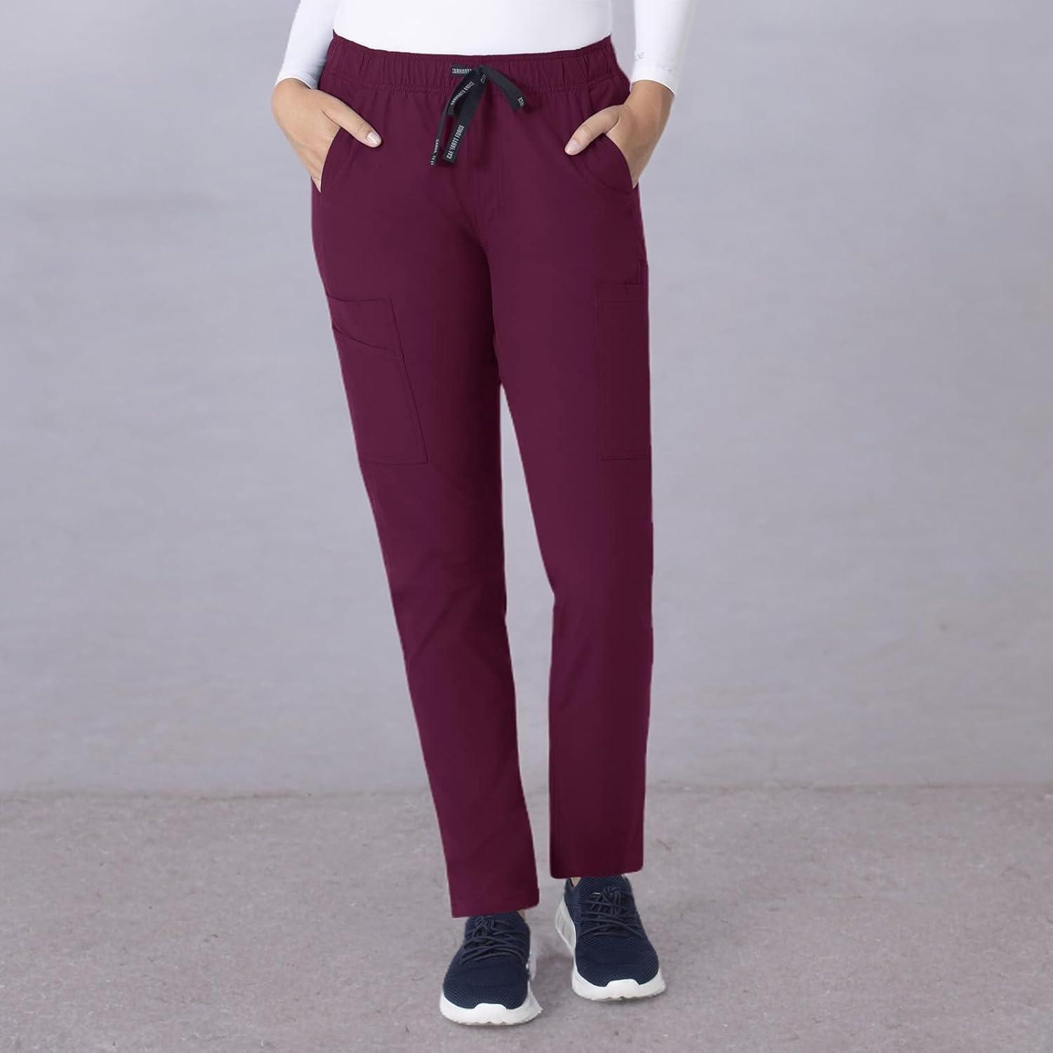 Carhartt Scrubs for Women, Force Crossflex StraightLeg Cargo Pants with Drawstring and 7 Pockets(Wine)