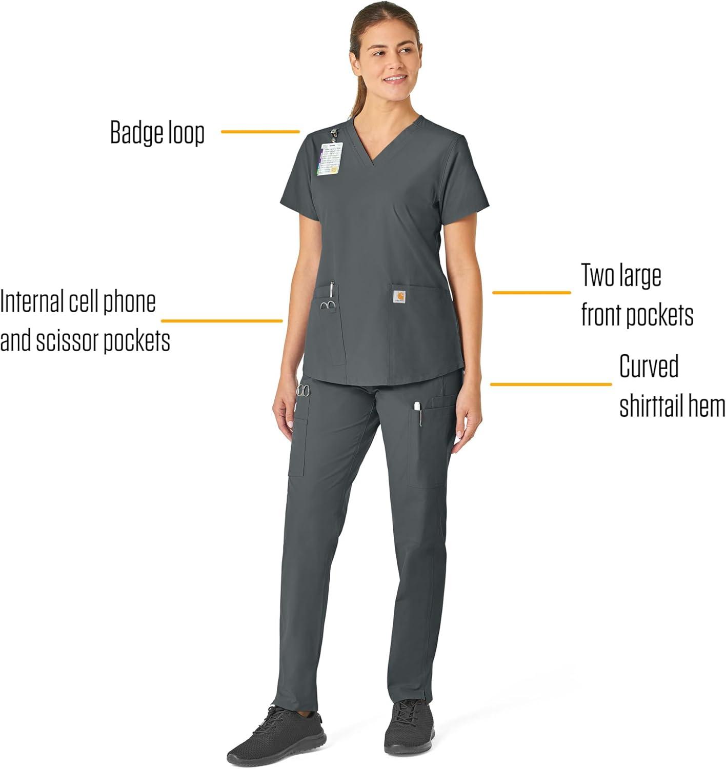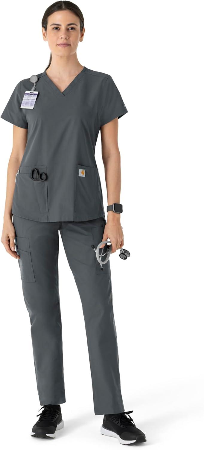 Carhartt Scrubs for Women, Force Crossflex StraightLeg Cargo Pants with Drawstring and 7 Pockets(Pewter)