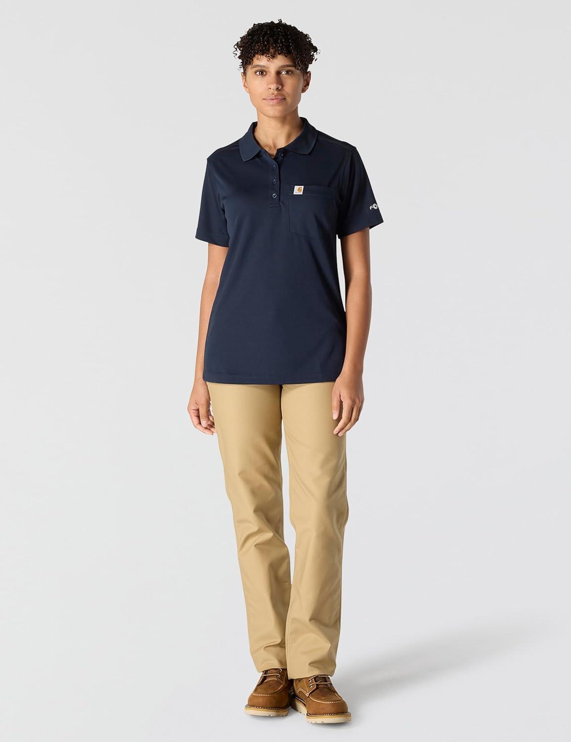 Carhartt Women’s Force Relaxed Fit Lightweight Short-Sleeve Pocket Polo(Navy)