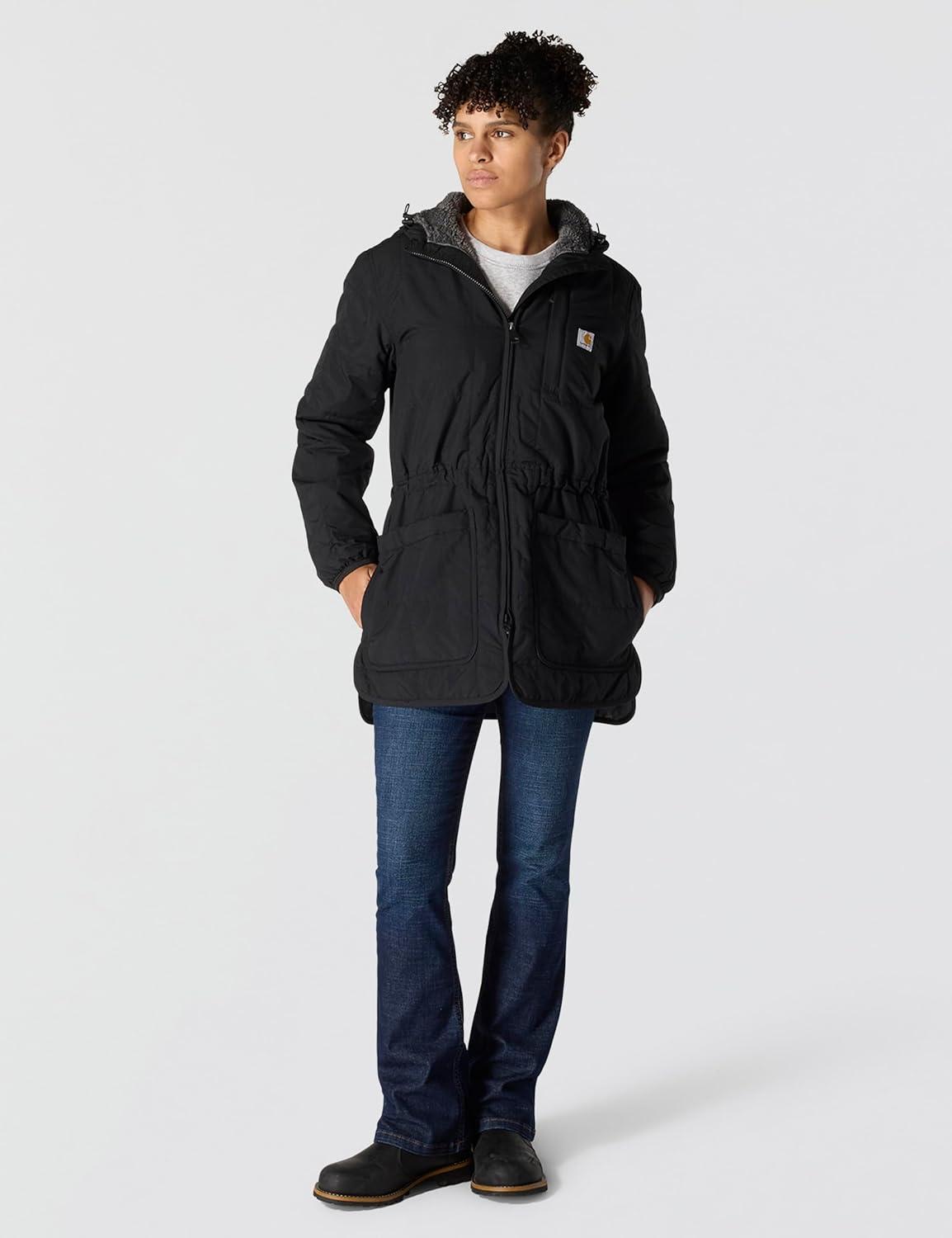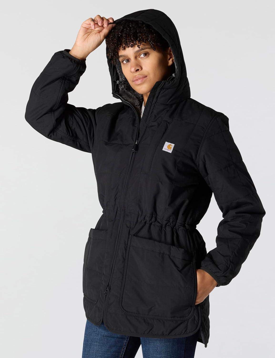 Carhartt Womens Rain Defender® Loose Fit Lightweight Insulated Hooded Coat(Black)