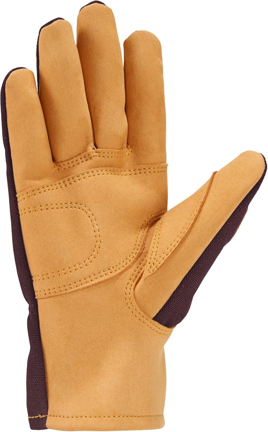 Carhartt Women’s GW0793W Women’s Duck/Synthetic Leather Open Cuff Glove(Carhartt Brown)