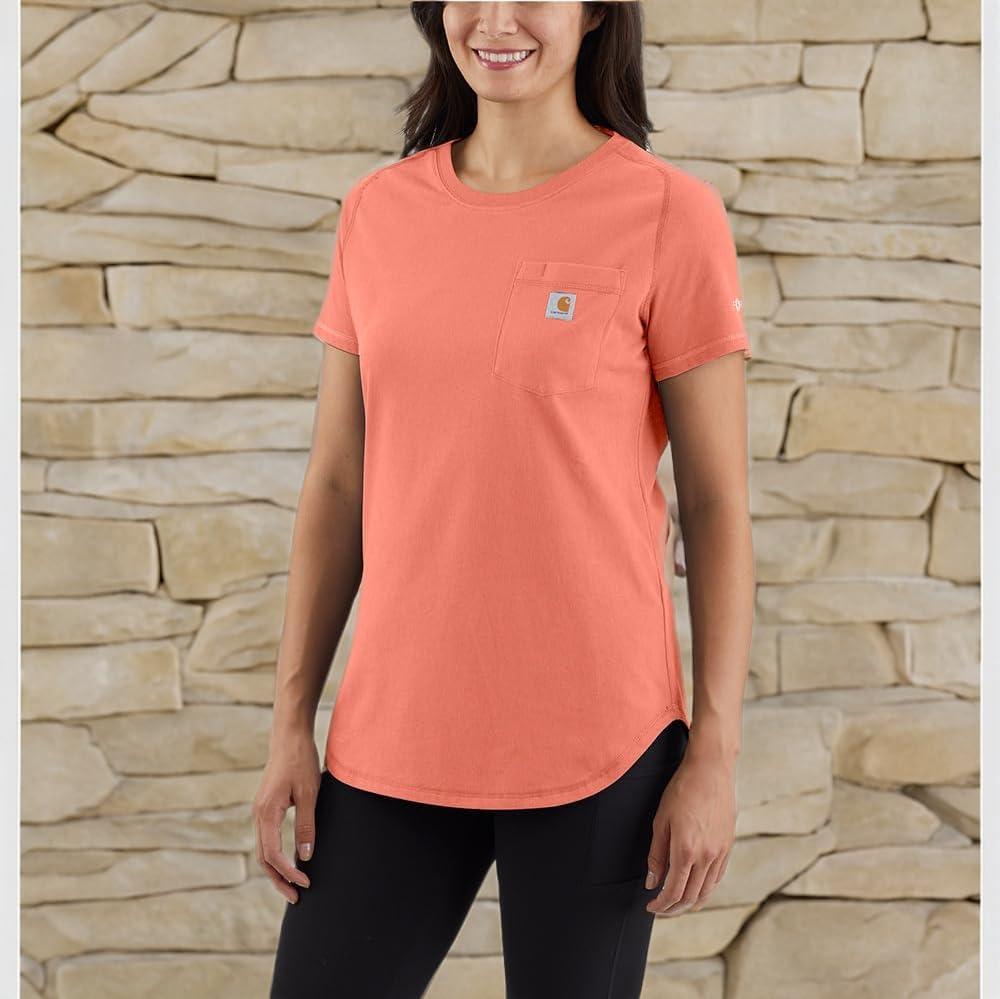 Carhartt Women’s Force Relaxed Fit Midweight Pocket T-Shirt(Coral Glow)