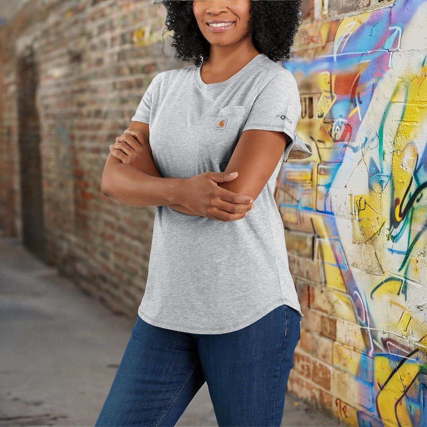 Carhartt Women’s Force Relaxed Fit Midweight Pocket T-Shirt(Heather Gray)