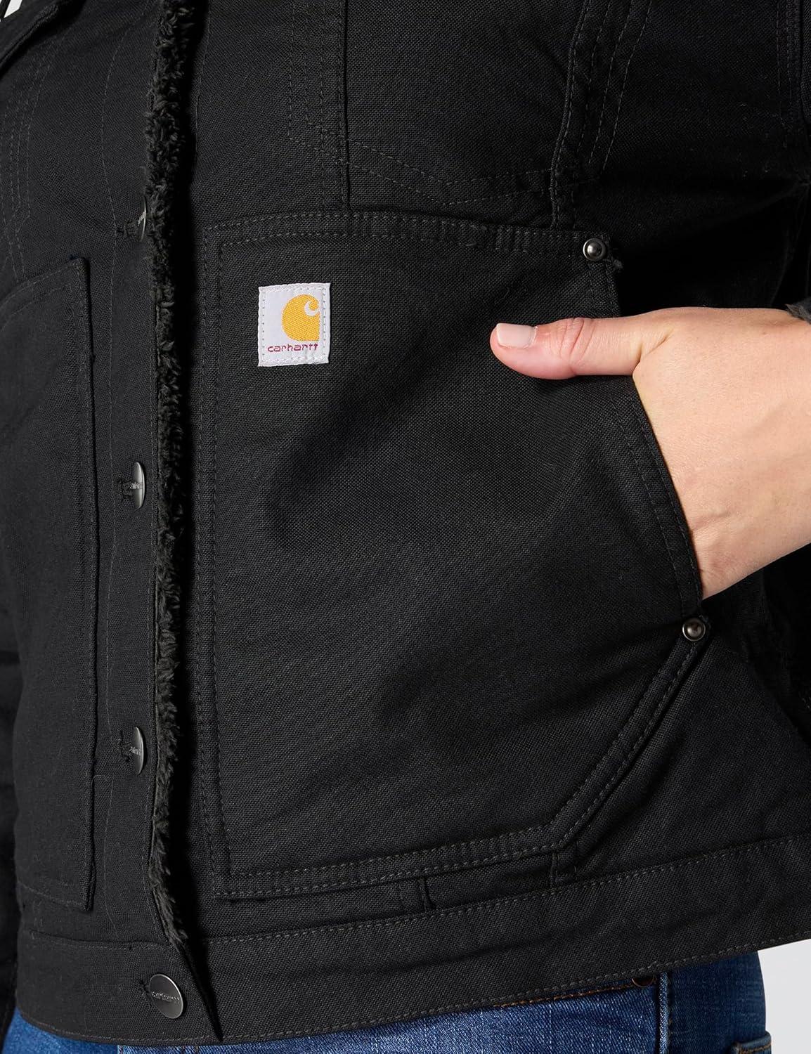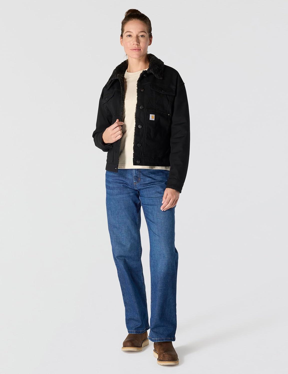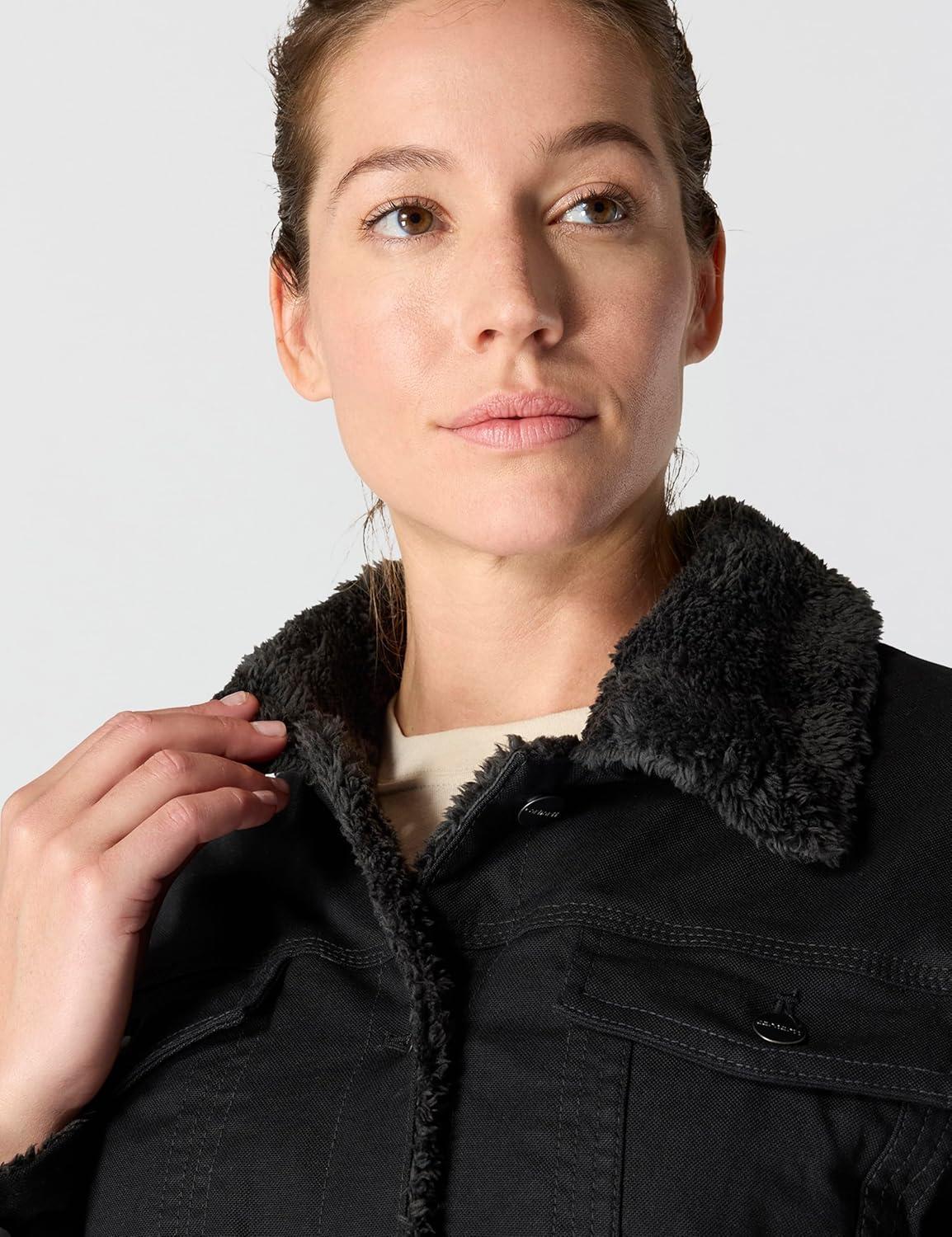 Carhartt Women’s Rugged Flex® Loose Fit Canvas Sherpa-Lined Jacket(Black)