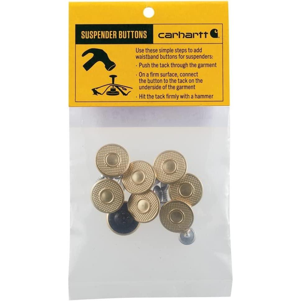 Extend the life of your Carhartt with the do-it-yourself button replacement kit. Easily replace a lost button on a jacket or the one that popped off your pants. Kit can also be used to add suspender attachments to pants. Includes eight buttons per pack.
