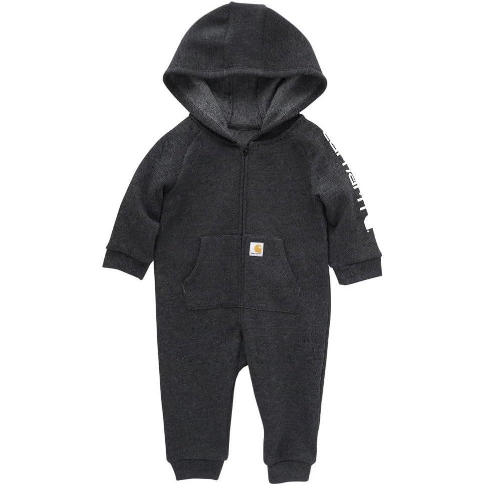 Carhartt baby-boys Long-sleeve Hooded Zip-up Footless Jumpsuit One-piece Hoodie(Caviar Black Heather)