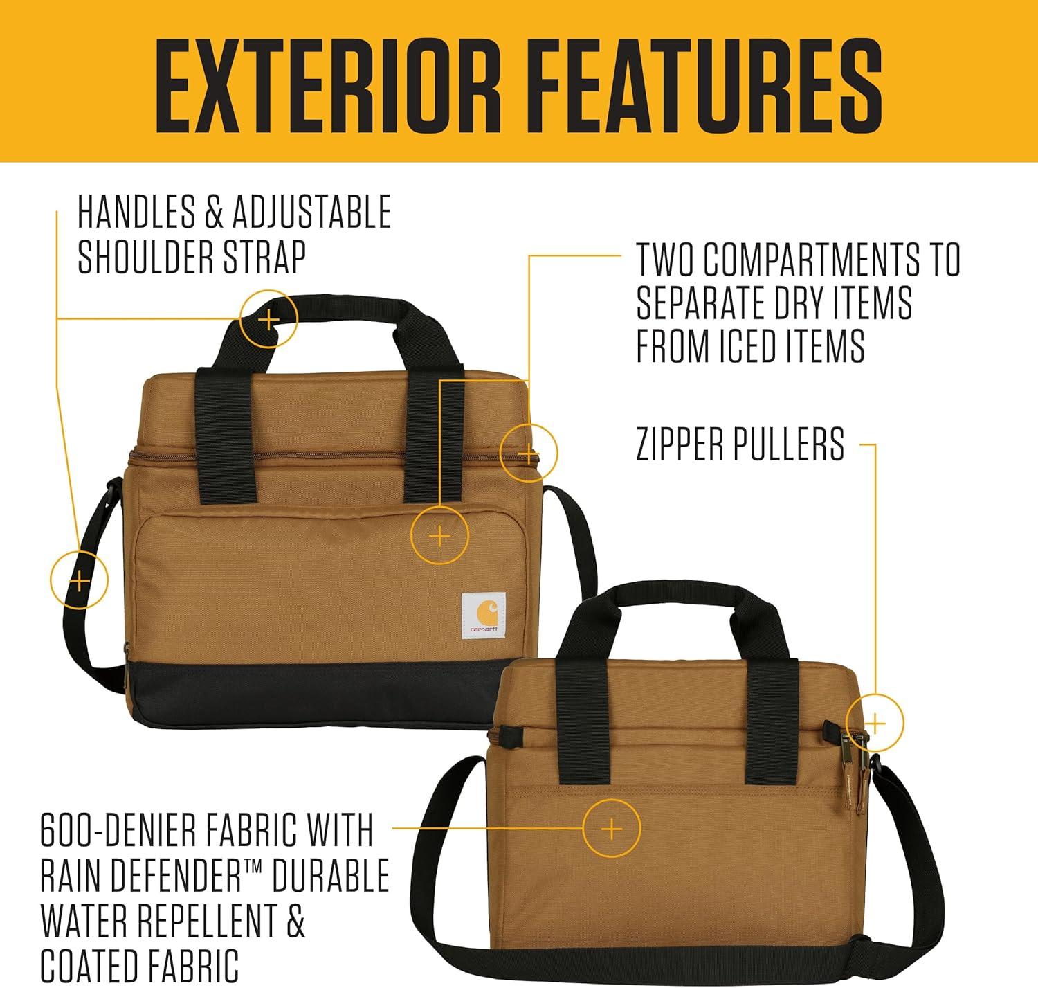 Carhartt Insulated Two Compartment Cooler, Durable Water Repellent Material W/Front Zippered Pocket for Camping, Beach & Travel(Black)