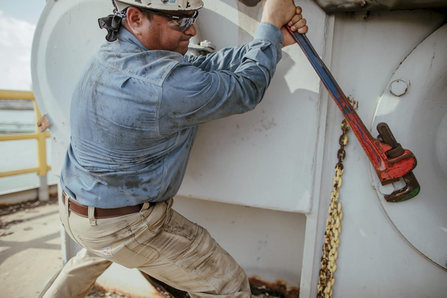 Rugged and durable, this men's hardworking belt is built to get the job done. It's made of smooth full-grain bridle leather with a classic harness buckle. The Carhartt logo is embossed on the leather loop.