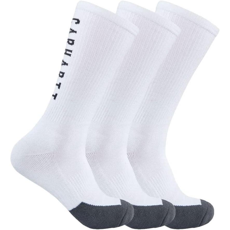 Carhartt Men’s Force Midweight Logo Crew Sock 3 Pack(White)