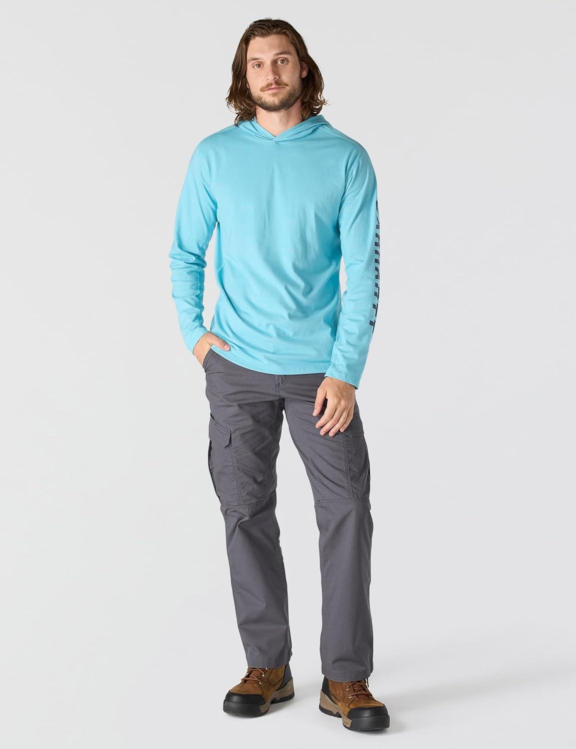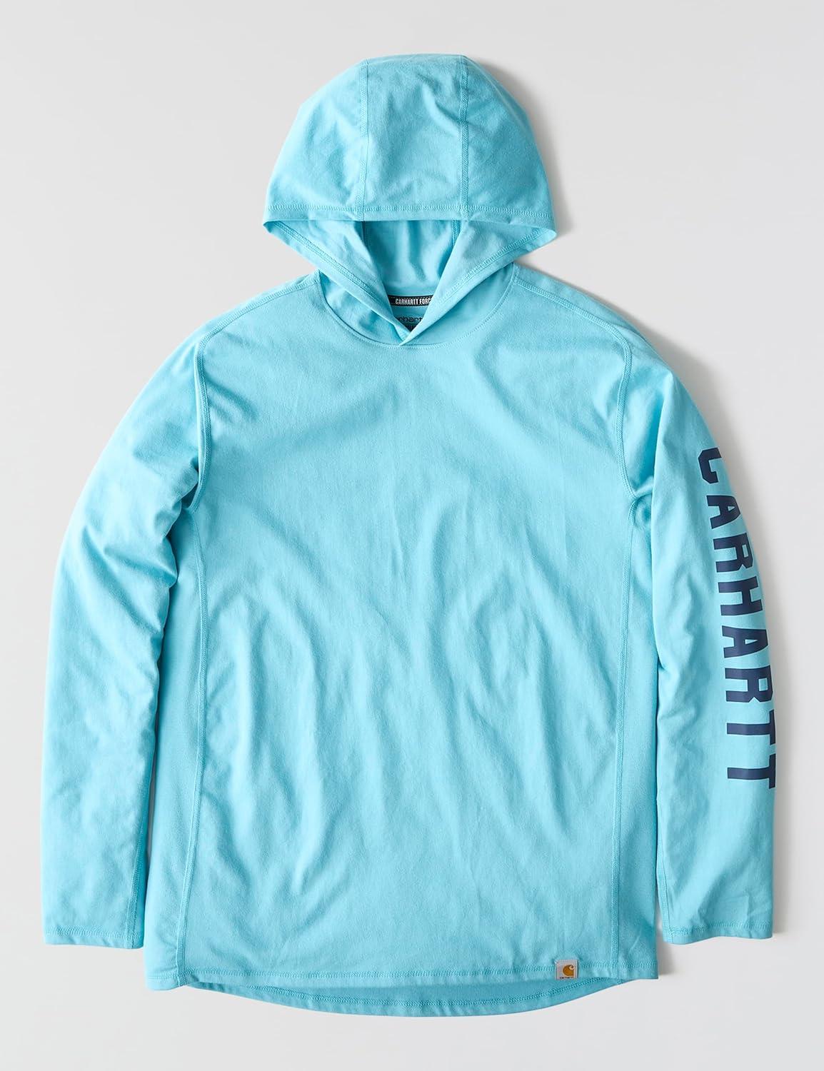 Carhartt Men’s Force Relaxed Fit Midweight Long-Sleeve Logo Graphic Hooded T-Shirt(Dusted Aqua)