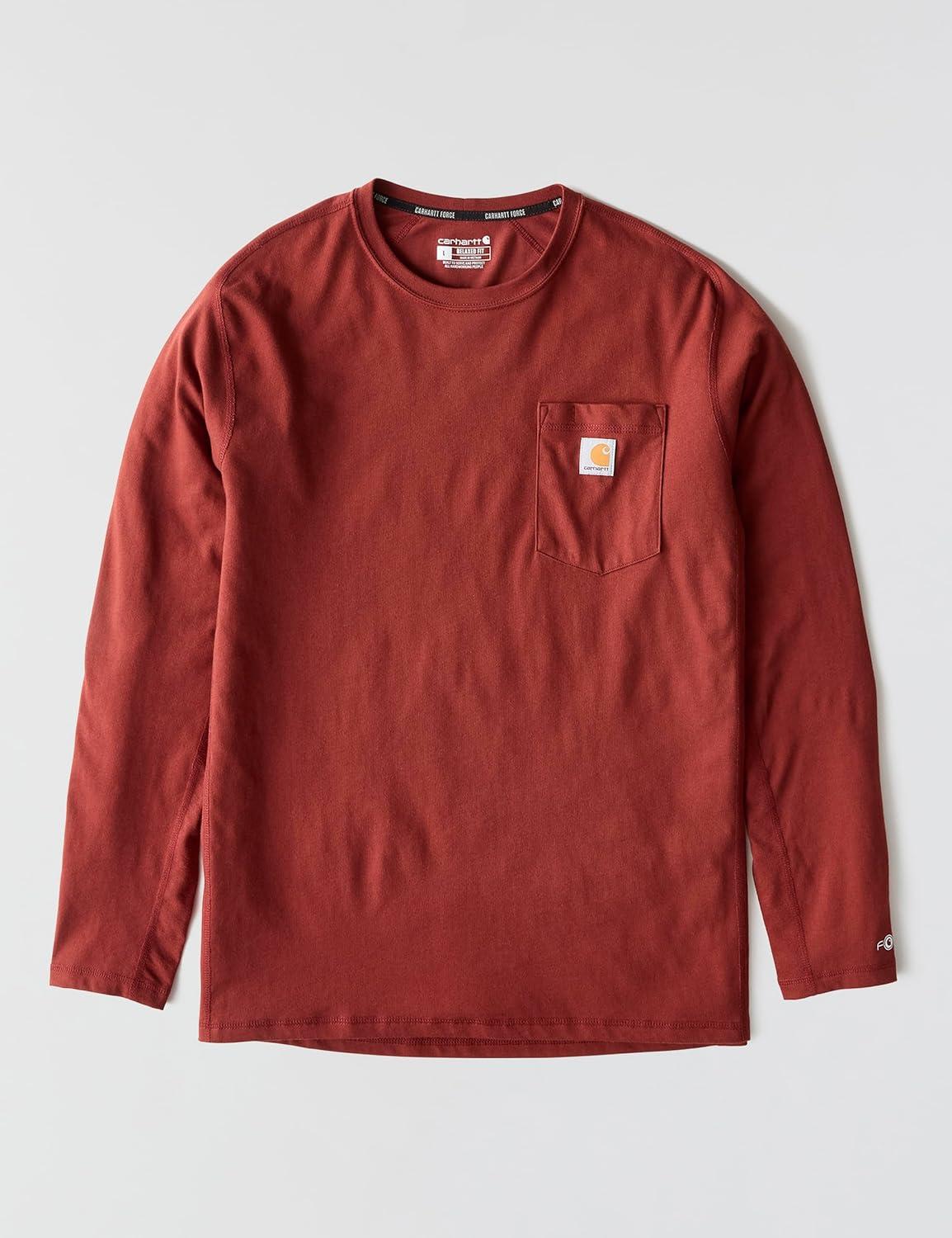 Carhartt Men’s Force Relaxed Fit Midweight Long-Sleeve Pocket T-Shirt(Dark Spice Red Heather)