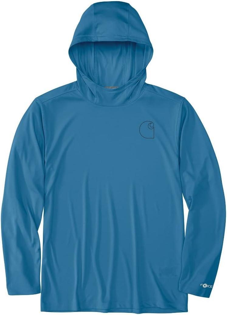 Carhartt Men’s Force Sun Defender™ Lightweight Long-Sleeve Hooded Logo Graphic T-Shirt(Horizon Blue Heather)