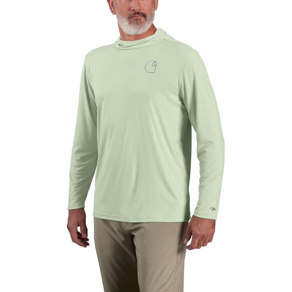 Carhartt Men’s Force Sun Defender™ Lightweight Long-Sleeve Hooded Logo Graphic T-Shirt(Tender Greens)