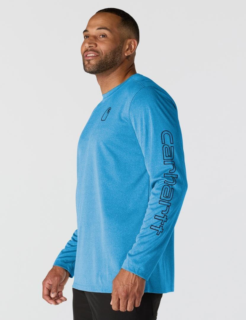 Carhartt Men’s Force Sun Defender Lightweight Long-Sleeve Logo Graphic T-Shirt(Horizon Blue Heather)