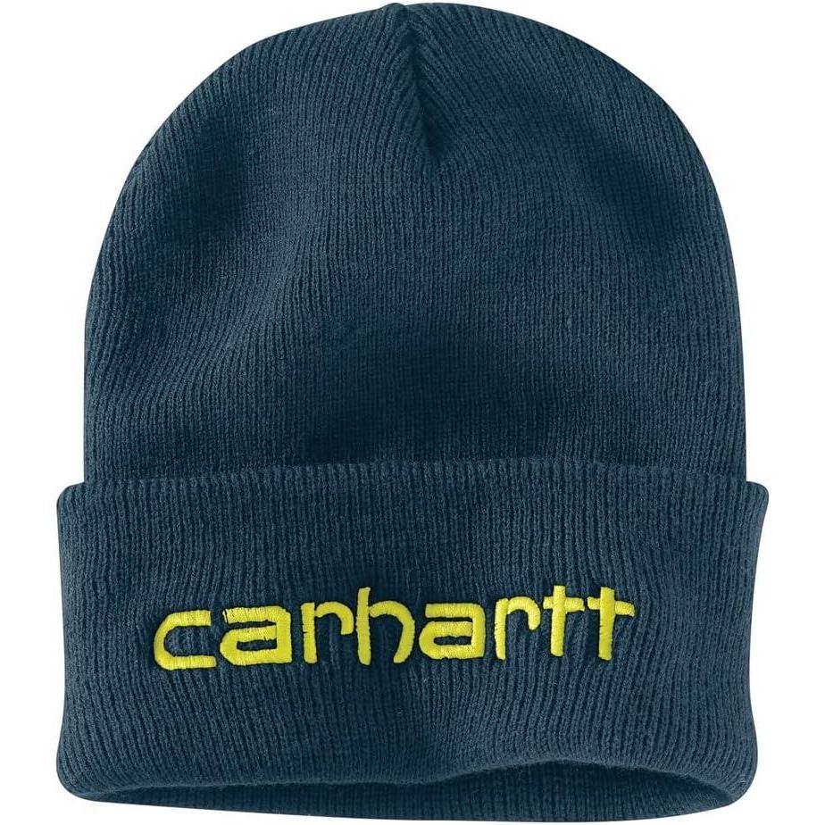 Carhartt Men’s Knit Insulated Logo Graphic Cuffed Beanie(Night Blue)