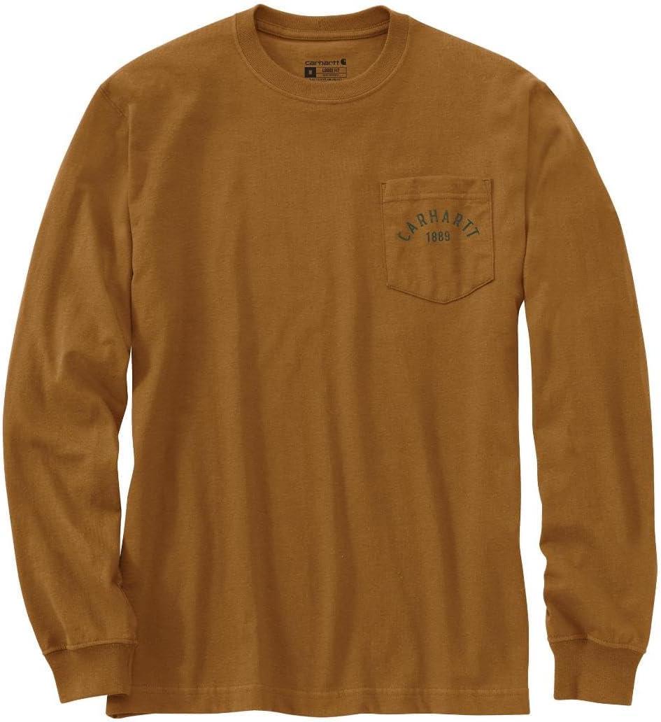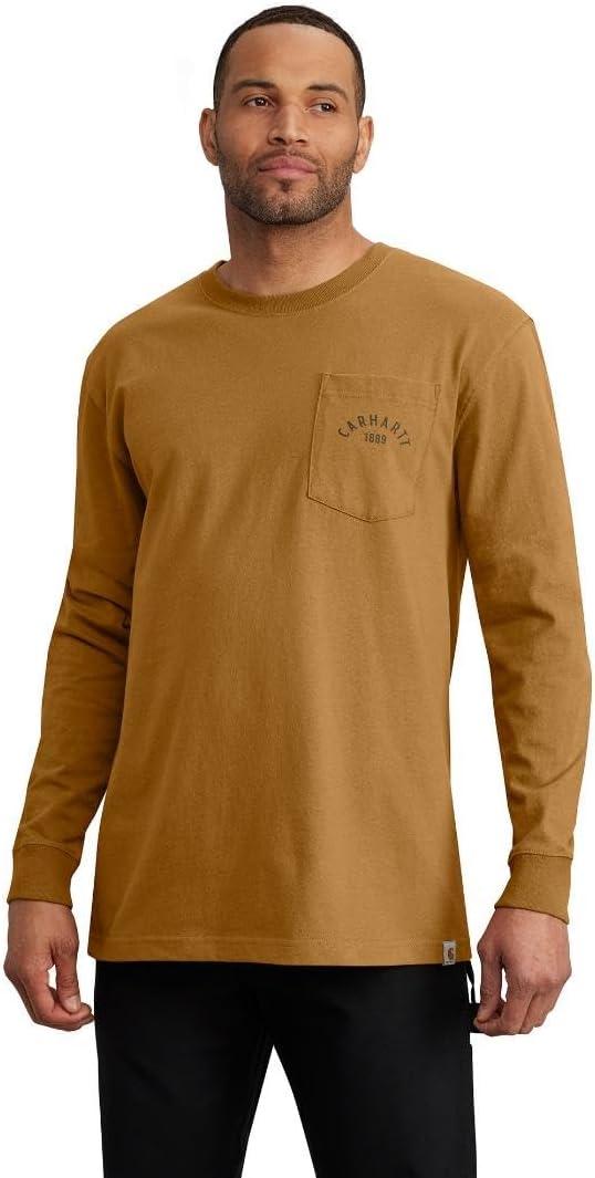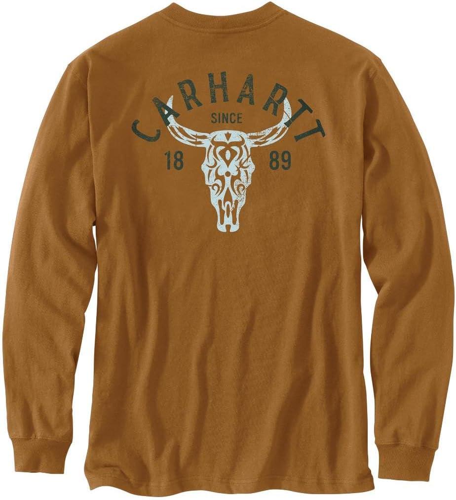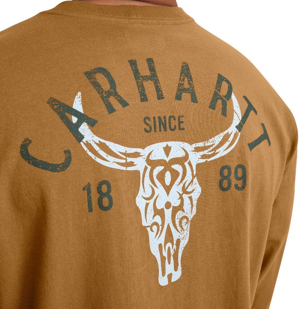 Carhartt Mens Loose Fit Heavyweight Long-Sleeve Pocket Longhorn Graphic T-Shirt(Carhartt Brown)