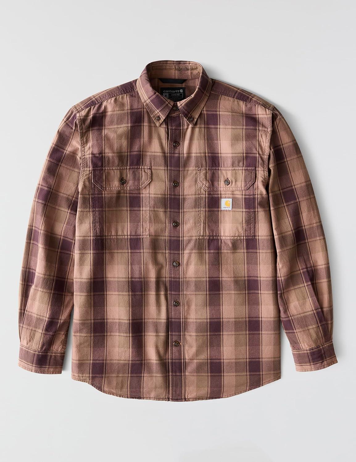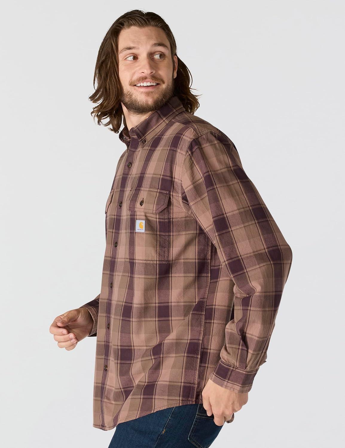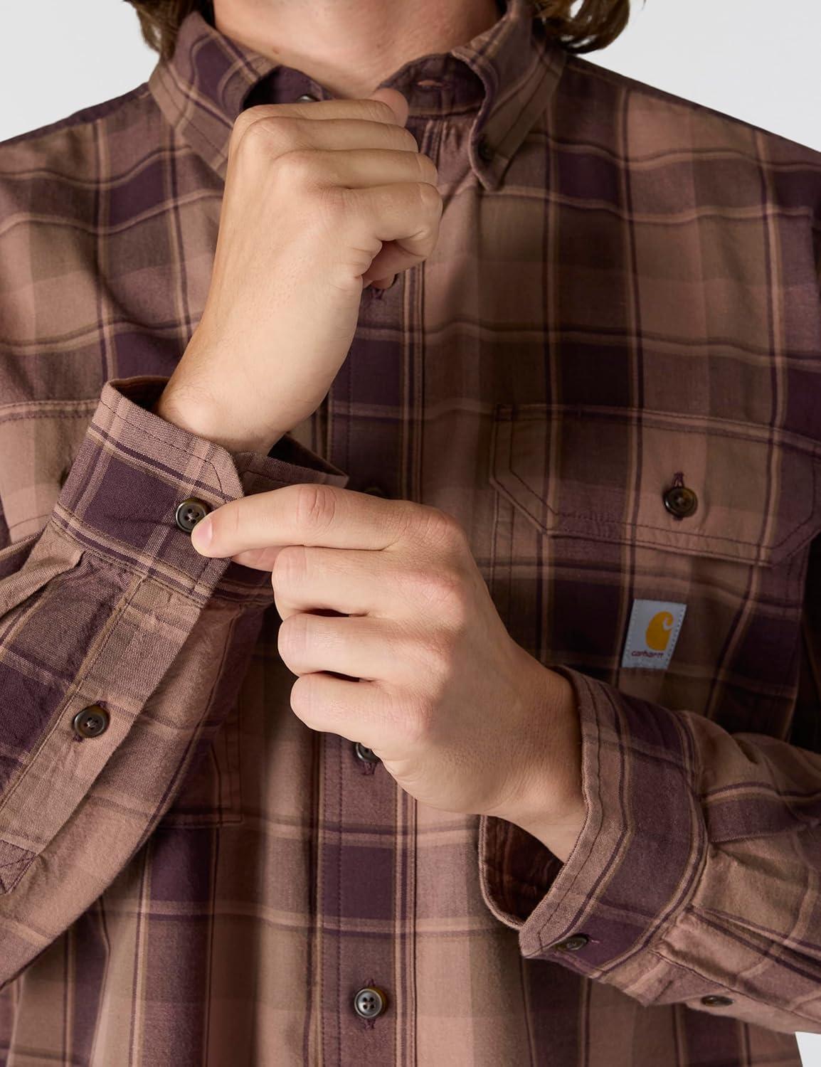 Carhartt Men’s Loose Fit Midweight Chambray Long-Sleeve Plaid Shirt(Sepia)