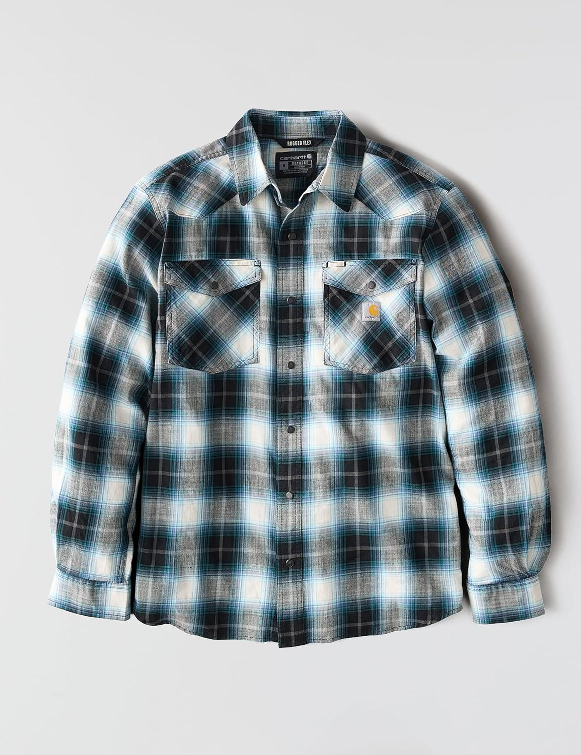 Carhartt Men’s Montana Rugged Flex Relaxed Fit Lightweight Long-Sleeve Snap-Front Plaid Shirt(Black)