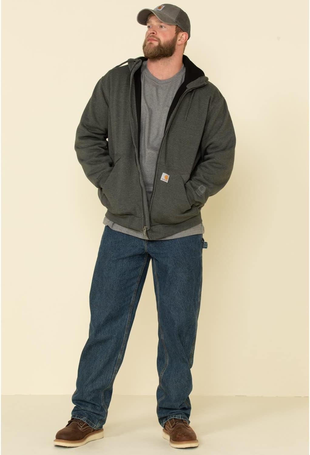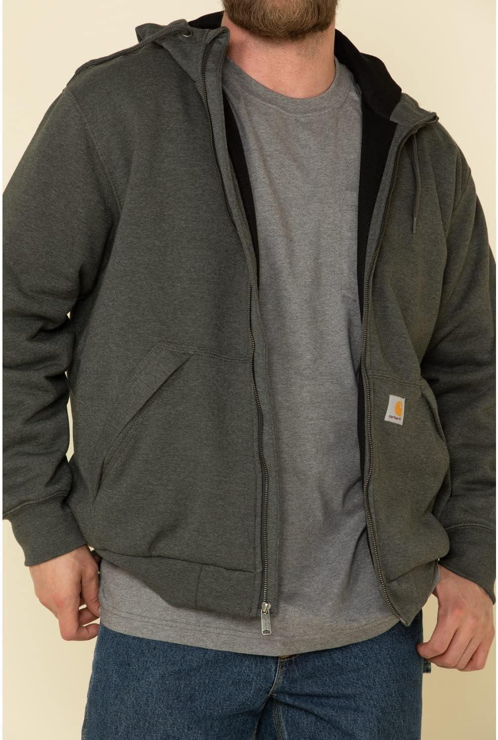 Carhartt Men’s Rain Defender Loose Fit Midweight Thermal-Lined Full-Zip Sweatshirt(Carbon Heather/Black)