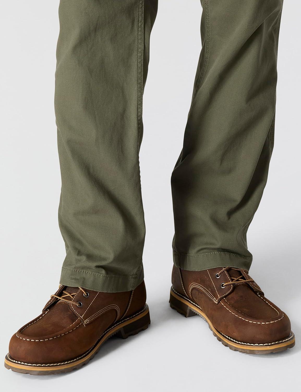 This dungaree features a hint of stretch for comfort and a cell phone pocket for functionality. It's made from 8-ounce, 98 percent cotton/2 percent spandex canvas and sits at the waist, has a relaxed seat and thigh, reinforced front slash pocket, belt loops sewn on the seam for strength, right-leg secured cell phone pocket and straight leg opening.