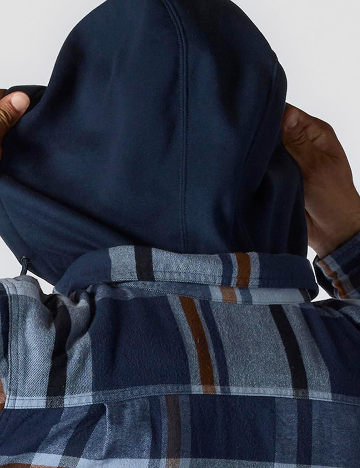 Carhartt Men’s Rugged Flex Relaxed Fit Flannel Fleece Lined Hooded Shirt Jac(Navy)