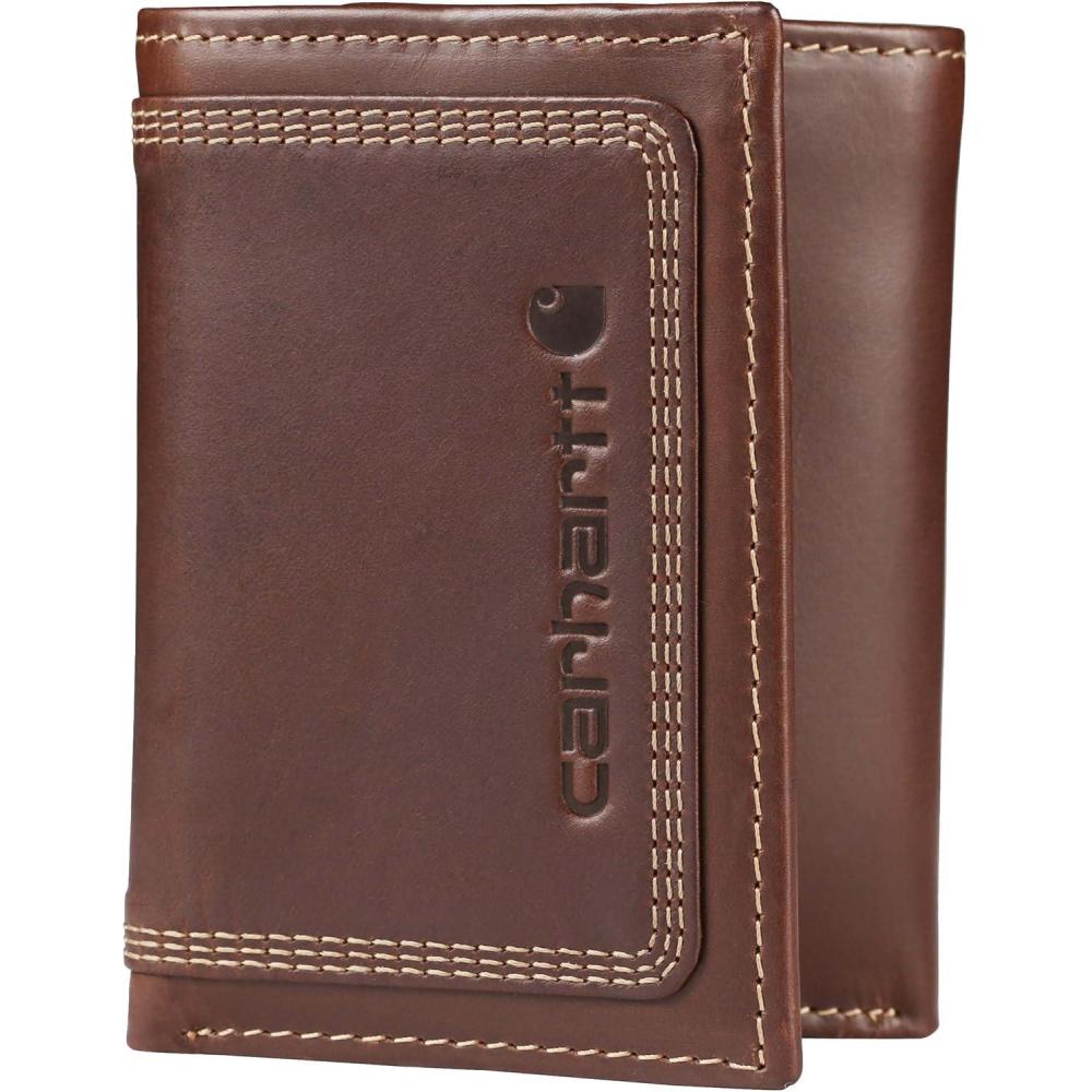 Carhartt Men’s Rugged Leather Triple Stitch Wallets, Available in Multiple Styles(Brown (Trifold))