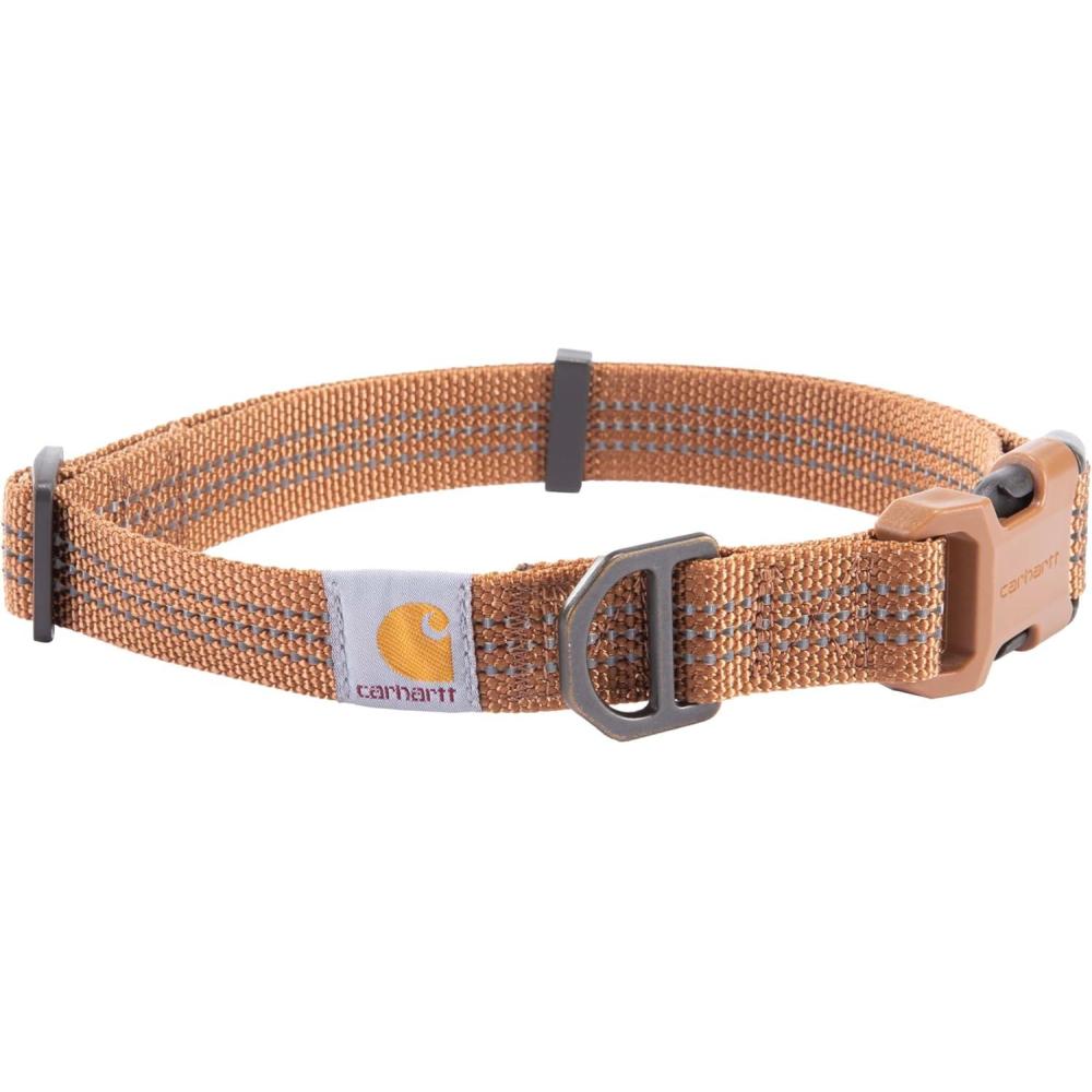 Many dogs wear the same collar day in and day out, so this adjustable collar is made for the long-lasting durability and comfort that Carhartt's built their name on. It has a rugged 600-denier construction, with a strong metal D-ring and reflective details. An adjustable side-release buckle keeps the fit secure and allows for easy on and off.