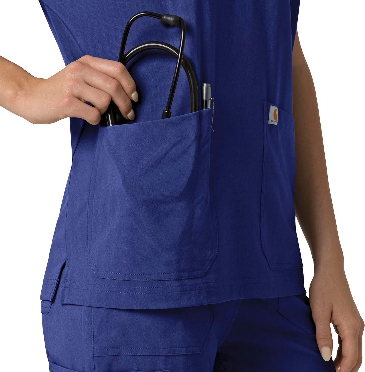 The Carhartt Force Cross-Flex Women's Flex Panel V-Neck Scrub Top – the perfect blend of style, comfort, and durability for your demanding work environment. Elevate your medical apparel with this top-notch scrub designed to meet the unique needs of hardworking women like you. Crafted from high-quality fabric, this Carhartt scrub top ensures superior comfort throughout your busy day. The innovative flex panel construction allows for unrestricted movement, making it an ideal choice for healthcare professionals who are always on the go. The V-neck design adds a touch of sophistication, while the practical details like multiple pockets provide convenient storage for your essentials.