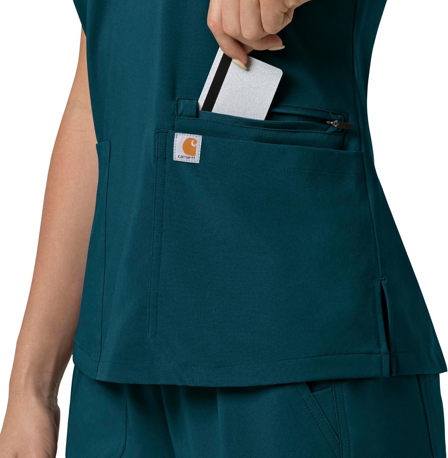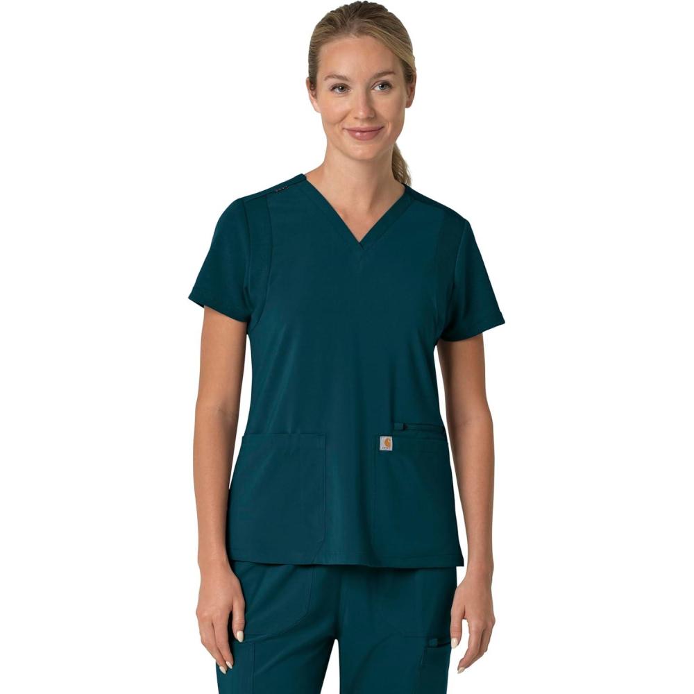 The Carhartt Force Cross-Flex Women's Flex Panel V-Neck Scrub Top – the perfect blend of durability, comfort, and style for healthcare professionals. Crafted with the renowned Carhartt quality, these women's scrubs are designed to meet the demands of your busy workday. Made with Carhartt Force technology, these scrubs are built to withstand the rigors of your daily routine, ensuring longevity and reliability. Whether you're a seasoned healthcare professional or a student entering the medical field, these Carhartt scrubs deliver on both functionality and fashion. Elevate your workwear with the Carhartt Force Cross-Flex Women's Flex Panel V-Neck Scrub Top – the ultimate choice for those who prioritize quality and style in their workwear.